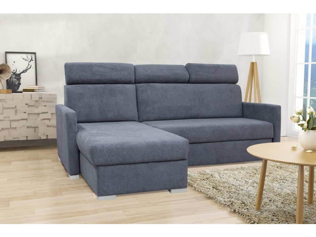 Sedací souprava Heda je vyrobena v jednoduché elegantní linii, které se hodí do moderního i klasického interiéru. Její velkou předností univerzální použití. Tzn. že si ji můžete podle potřeby sestavit jako levou nebo pravou, což je výhoda při zařizování obývacího pokoje. Nemusíte přemýšlet do jakého rohu sedací soupravu postavíte. Jednoduše si ji podle potřeby přizpůsobíte. Sedací souprava je rozkládací. Jednoduchým rozložením vytvoříte dostatečně velké lůžko k příležitostnému přespání Vaší návštěvy. Samozřejmostí je i praktický úložný prostor, který můžete využít např. na lůžkoviny. Sedací souprava je potažena kvalitní látkou Vogue. Výplň sedáků tvoří kombinace pružin s kvalitní PUR pěnou, což zajišťuje velmi pohodlné sezení. Pro pohodlí při sezení a odpočinku, je sedací souprava vybavena polohovacími opěrkami hlavy. Vyobrazené doplňky a dekorace nejsou v ceně. Sedací souprava bude dodána v šedé potahové látce, která je vyobrazena na druhé fotografii.