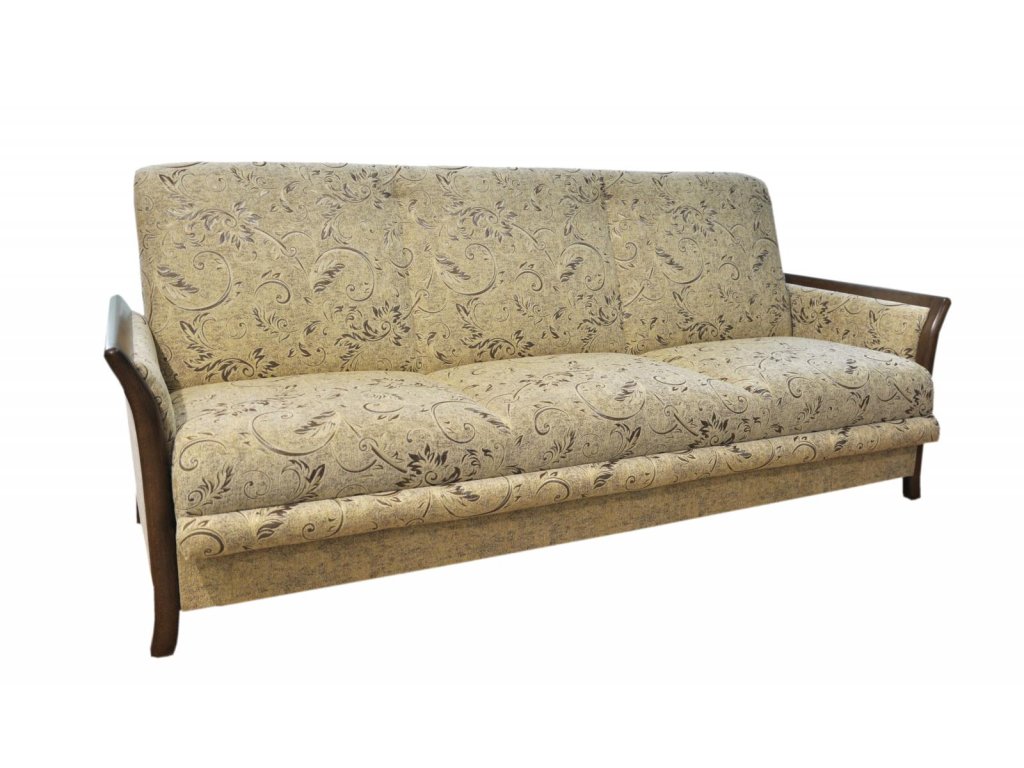Elegantní sedací souprava Jana s rozkládacím trojsedem a dvěma křesly. Sedací souprava má úložný prostor a jednoduchým rozkladem vznikne lůžko na občasné přespání pro dvě osoby. Výplň sedáku tvoří kombinace pružin bonell a faliste s kvalitní PUR pěnou. Sedací souprava je očalouněná kvalitní látkou Vita. Čalounění v kombinaci se dřevem působí velice stylově. Bočnice jsou vyrobené z bukového masivu, moření je možné v různých barevních odstínech. Sedací soupravu lze objednat i v jiných barevných provedeních (viz. vzorník látek níže). Odstíny nebo kresba dřeva nemusí přesně odpovídat vyobrazeným vzorkům.