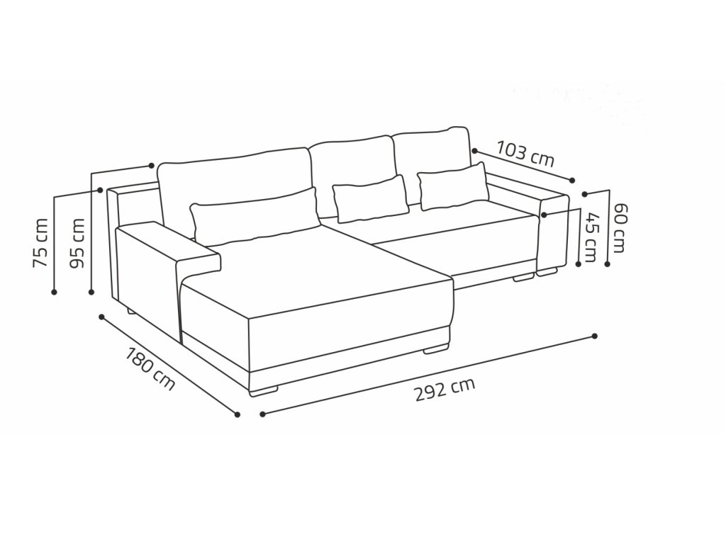 Sedací souprava Lacom MAX výborně zapadne do moderního i klasického interiéru. Její velkou předností je pohodlí, praktičnost a univerzální použití. Tzn. že si ji můžete podle potřeby sestavit jako levou nebo pravou, což je výhoda při zařizování obývacího pokoje. Nemusíte přemýšlet do jakého rohu postavíte sedací soupravu, jednoduše ji podle potřeby přizpůsobíte. Sedací souprava je rozkládací a může tak sloužit k občasnému přespání Vaší návštěvy. Samozřejmostí je i praktický úložný prostor, který můžete využít např. na lůžkoviny. Sedací souprava je potažena kvalitní látkou a nabízíme ji v několika trendy odstínech. Výplň sedáků tvoří kombinace pružin s kvalitní PUR pěnou, což zajišťuje velmi pohodlné sezení. Součástí sedací soupravy jsou tři velké opěrné a tři malé dekorační polštáře. Vyobrazené doplňky a dekorace nejsou v ceně.