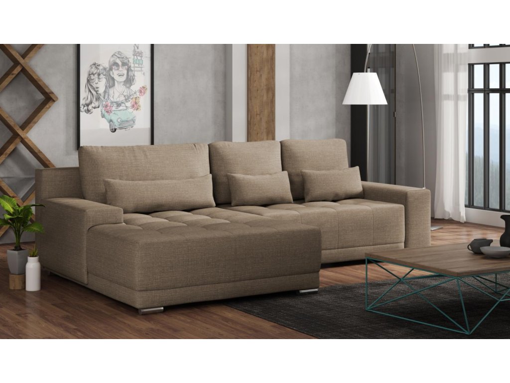 Sedací souprava Lacom MAX výborně zapadne do moderního i klasického interiéru. Její velkou předností je pohodlí, praktičnost a univerzální použití. Tzn. že si ji můžete podle potřeby sestavit jako levou nebo pravou, což je výhoda při zařizování obývacího pokoje. Nemusíte přemýšlet do jakého rohu postavíte sedací soupravu, jednoduše ji podle potřeby přizpůsobíte. Sedací souprava je rozkládací a může tak sloužit k občasnému přespání Vaší návštěvy. Samozřejmostí je i praktický úložný prostor, který můžete využít např. na lůžkoviny. Sedací souprava je potažena kvalitní látkou a nabízíme ji v několika trendy odstínech. Výplň sedáků tvoří kombinace pružin s kvalitní PUR pěnou, což zajišťuje velmi pohodlné sezení. Součástí sedací soupravy jsou tři velké opěrné a tři malé dekorační polštáře. Vyobrazené doplňky a dekorace nejsou v ceně.