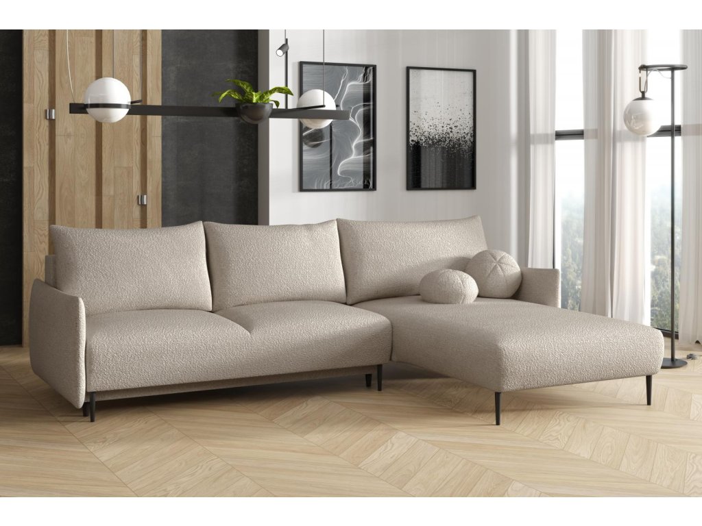 Sedací souprava Lamia je vyrobena v jednoduchém elegantním designu, který se hodí do všech interiérů. Její velkou předností je univerzální možnost sestavení. Tzn. že podle potřeby můžete mít levou nebo pravou stranu, což je výhoda při zařizování obývacího pokoje. Nemusíte přemýšlet do jakého rohu sedací soupravu postavíte a jednoduše si ji podle potřeby přizpůsobíte. Sedací souprava je rozkládací. Jednoduchým rozložením vytvoříte dostatečně velké lůžko k příležitostnému přespání Vaší návštěvy. Samozřejmostí je i praktický úložný prostor, který můžete využít např. na lůžkoviny. Sedací souprava je potažena kvalitní látkou Anthology, která je extrémně měkká a příjemná na dotek se specifickou bouclé texturou. Výplň sedáků tvoří kombinace vlnitých pružin s kvalitní HR pěnou. Pro pohodlí při sezení a odpočinku, je sedací souprava vybavena 3 objemnými polštáři. Správná barva potahové látky je zobrazena na první a druhé fotografii. Ostatní fotografie jsou pouze ilustrační.