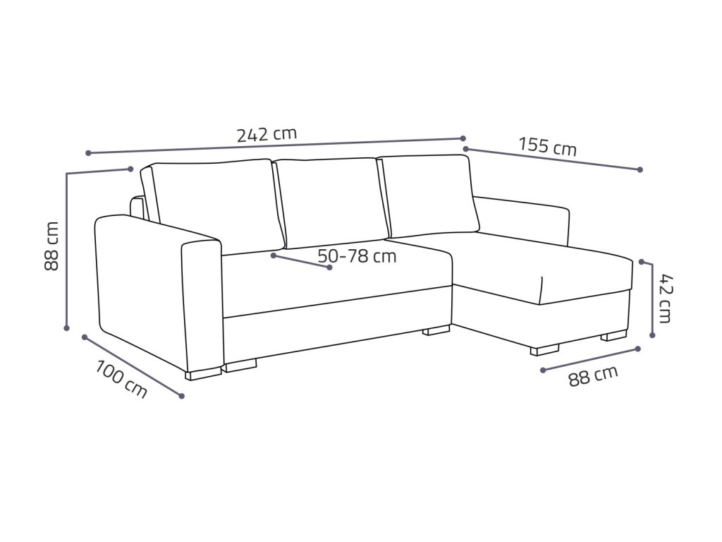 Loreta je moderní rohová sedací souprava s nadčasovým designem. Její předností je pohodlí, praktičnost a univerzální použití. Můžete si ji podle potřeby sestavit jako levou nebo pravou, což je výhoda při zařizování obývacího pokoje. Nemusíte přemýšlet do jakého rohu postavíte sedací soupravu, jednoduše ji podle potřeby přizpůsobíte. Pohodlí při sezení zajišťuje kombinace pružin faliste s kvalitní PUR pěnou a velké opěrné polštáře, které jsou odnímatelné, takže si je můžete přizpůsobit svým potřebám. Praktickou stránkou sedací soupravy je úložný prostor a možnost rozložení k občasnému přespání Vaší návštěvy. Sedací souprava je potažena látkou jednobarevnou a v nabídce najdete více barevných variant. V ceně sedací soupravy jsou 3 velké opěrné polštáře. Ostatní vyobrazené dekorace nejsou v ceně. Správná barva potahové látky je zobrazena na první fotografii. Ostatní fotografie jsou pouze ilustrační.