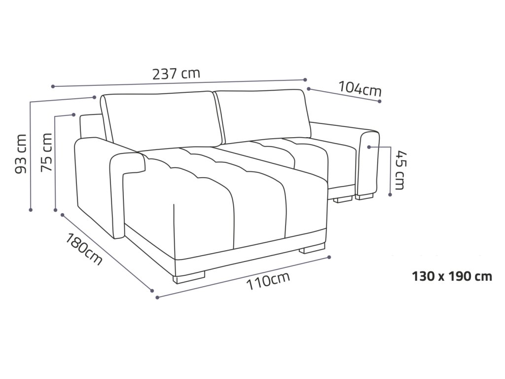 Manon je moderní rohová sedací souprava s nadčasovým designem. Její předností je pohodlí, praktičnost a univerzální použití. Můžete si ji podle potřeby sestavit jako levou nebo pravou, což je výhoda při zařizování obývacího pokoje. Nemusíte přemýšlet do jakého rohu postavíte sedací soupravu, jednoduše ji podle potřeby přizpůsobíte. Pohodlí při sezení zajišťuje kombinace pružin faliste s kvalitní PUR pěnou a velké opěrné polštáře, které jsou odnímatelné. Praktickou stránkou sedací soupravy je úložný prostor a možnost rozložení k občasnému přespání Vaší návštěvy. Sedací souprava je potažena jednobarevnou látkou a v nabídce najdete více barevných variant. V ceně sedací soupravy jsou 2 velké opěrné polštáře. Ostatní vyobrazené dekorace nejsou v ceně. Správná barva potahové látky je zobrazena na první fotografii. Fotografie sedací soupravy v rozkladu jsou pouze ilustrační.