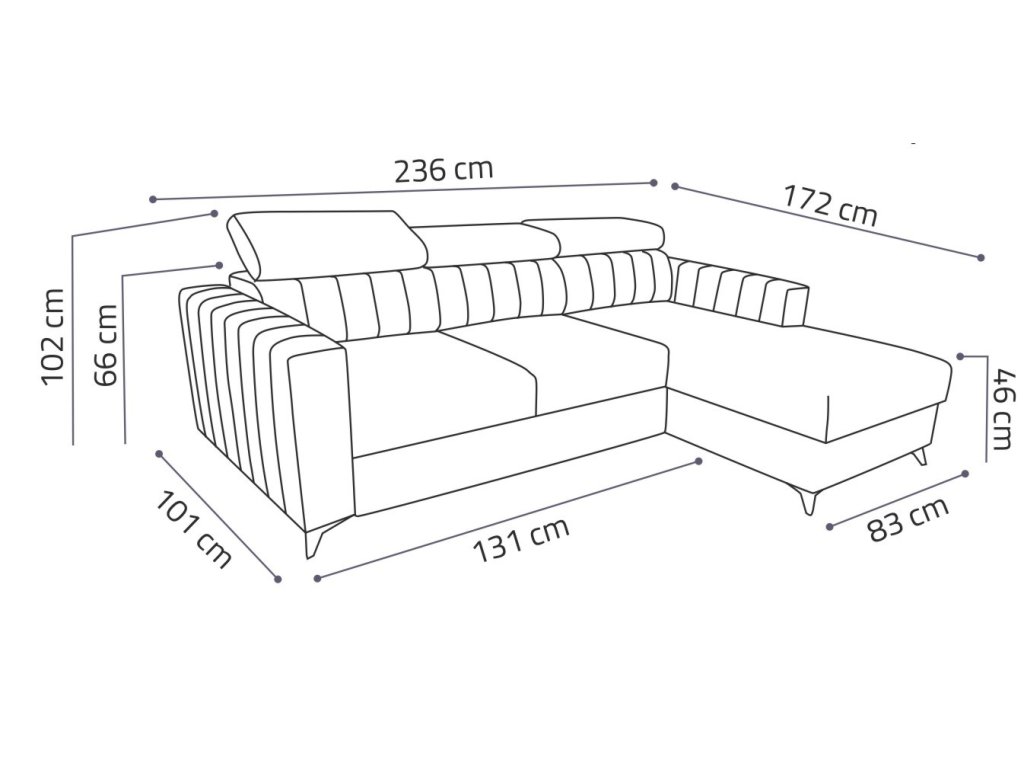 Sedací souprava Mildred Premium osloví každého, kdo preferuje moderní vzhled a zároveň pohodlí a praktičnost. Sedací souprava je velmi pohodlná a dostatečně velká na posezení s přáteli, nebo rodinou. Pro případ, že se návštěva zdrží přes noc, je sedací souprava vybavena rozkladem, díky kterému sedací soupravu jednoduše přeměníte v prostorné lůžko. Sedací souprava má praktický úložný prostor, který můžete využít např., na lůžkoviny. Pohodlí při sezení zajišťuje výplň sedáků, kterou tvoří kombinace pružin faliste s kvalitní PUR pěnou. Komfort a pohodlí při odpočinku zvyšuje polohovací opěrka hlavy. Sedací soupravu nabízíme v levém i pravém provedení.