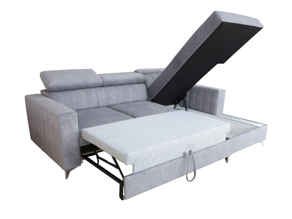 Sedací souprava Mildred osloví každého, kdo preferuje moderní vzhled a zároveň pohodlí a praktičnost. Je potažena kvalitní potahovou látkou s kontrastním prošitím. Sedací souprava je velmi pohodlná a dostatečně velká na posezení s přáteli, nebo rodinou. Pro případ, že se návštěva zdrží přes noc, je sedací souprava vybavena rozkladem, díky kterému sedací soupravu jednoduše přeměníte v prostorné lůžko. Sedací souprava má praktický úložný prostor, který můžete využít např., na lůžkoviny. Pohodlí při sezení zajišťuje výplň sedáků, kterou tvoří kombinace pružin faliste s kvalitní PUR pěnou. Komfort a pohodlí při odpočinku zvyšuje polohovací opěrka hlavy. Sedací soupravu nabízíme v levém i pravém provedení.