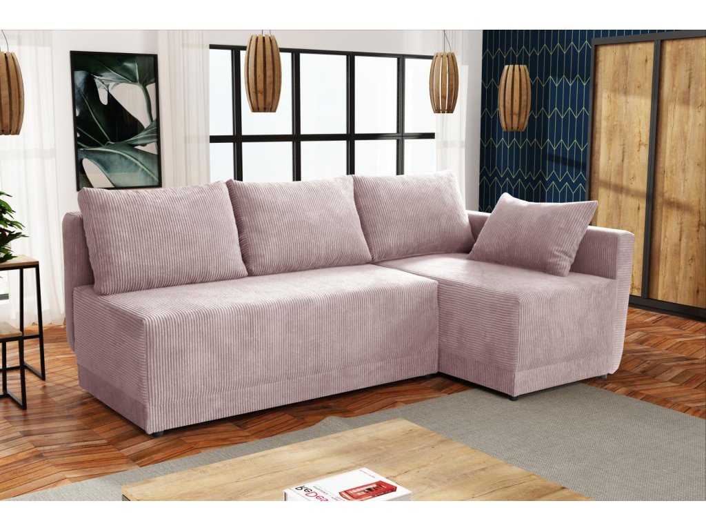 Moderní rohová sedací souprava Vás zaujme svým jednoduchým designem. Součástí jsou polštáře, které dělají sedací soupravu velice pohodlnou. Díky svým rozměrům je vhodná i do menších pokojů. Je praktická, rozklad lze použít k občasnému přespání, plocha lůžka je 198x133 cm. Uvnitř sedací soupravy je úložný prostor, který je možné využít k uložení lůžkovin. Výplň sedáku tvoří pružiny bonell v kombinaci s kvalitní PUR pěnou. Sedací soupravu nabízíme v několika barevných provedeních. Fotografie sedací soupravy v rozkladu jsou pouze ilustrační. Správný barevný odstín je na úvodní fotografii.