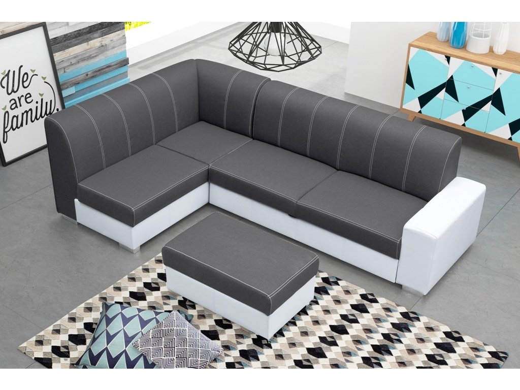 Rohová sedací souprava Rest s taburetem zdarma je vhodná do všech moderních interiérů. Je rozkládací a má praktický úložný prostor. Pohodlnost sezení zajišťuje kombinace pružin faliste s kvalitní PUR pěnou. Jednoduchým rozkladem vznikne lůžko vhodné k příležitostnému spaní. Sedací soupravu nabízíme v kvalitní potahové látce v kombinaci s bílou EKO kůží, a to v několika barevných provedeních, které také najdete v naší nabídce. V ceně sedací soupravy je taburet 55x90 cm. Ostatní vyobrazené dekorace nejsou v ceně.