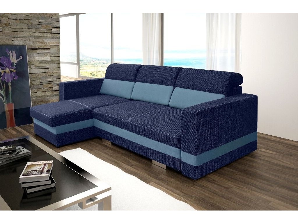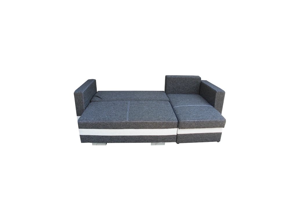 Elegantní rohová sedací souprava Rimini je rozkládací a má také 2 praktické úložné prostory. Díky svým rozměrům je vhodná i do menších pokojů. Jednoduchým rozložením pomocí automatu, vznikne dostatečně velké lůžko vhodné k příležitostnému spaní. Výplň sedáku tvoří kombinace pružin bonell s kvalitní PUR pěnou. Tato kombinace zajistí velmi pohodlné sezení. Sedací souprava je potažena kvalitní látkou v kombinaci 2 barev, a to v několika odstínech. V ceně sedací soupravy jsou 3 velké opěrné polštáře. Ostatní vyobrazené dekorace nejsou v ceně.