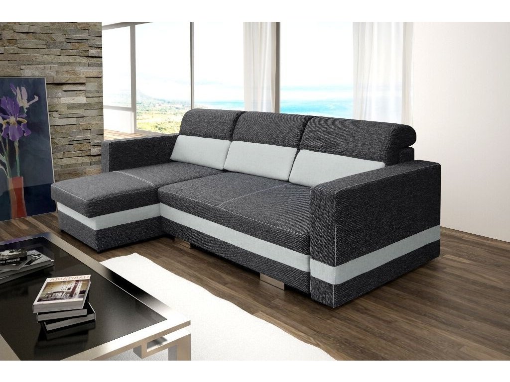 Elegantní rohová sedací souprava Rimini je rozkládací a má také 2 praktické úložné prostory. Díky svým rozměrům je vhodná i do menších pokojů. Jednoduchým rozložením pomocí automatu, vznikne dostatečně velké lůžko vhodné k příležitostnému spaní. Výplň sedáku tvoří kombinace pružin bonell s kvalitní PUR pěnou. Tato kombinace zajistí velmi pohodlné sezení. Sedací souprava je potažena kvalitní látkou v kombinaci 2 barev, a to v několika odstínech. V ceně sedací soupravy jsou 3 velké opěrné polštáře. Ostatní vyobrazené dekorace nejsou v ceně.