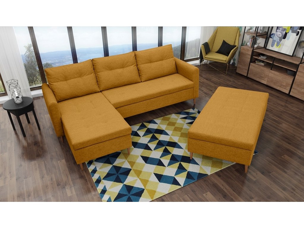 Rohová sedací souprava Areon, je vhodná do všech moderních interiérů. Pohodlnost sezení zajišťuje kombinace pružin s kvalitní PUR pěnou a 3 velké opěrné polštáře. V ceně sedací soupravy je velký taburet s úložným prostorem, který můžete využít jako další místo k sezení, nebo ho v případě potřeby můžete přistavit k sedací soupravě a vytvořit tak prostor pro občasné přespání Vaší návštěvy. Sedací soupravu nabízíme v kvalitní potahové látce v několika barevných provedeních. Záda sedací soupravy jsou čalouněná, takže je vhodná i pro umístění do prostoru. Úvodní fotografie je ilustrační. Vzorek látky, ve které bude sedací souprava dodána, je vyobrazen v doplňkových fotografiích. Vyobrazené doplňky a dekorace nejsou v ceně.
