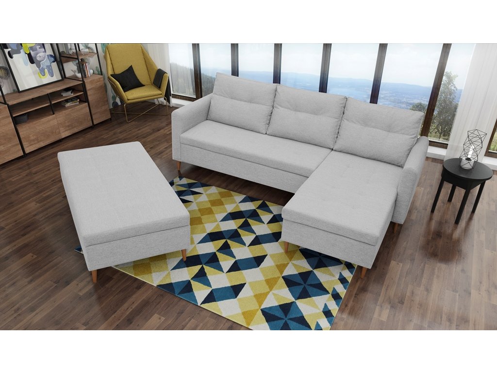 Rohová sedací souprava Areon, je vhodná do všech moderních interiérů. Pohodlnost sezení zajišťuje kombinace pružin s kvalitní PUR pěnou a 3 velké opěrné polštáře. V ceně sedací soupravy je velký taburet s úložným prostorem, který můžete využít jako další místo k sezení, nebo ho v případě potřeby můžete přistavit k sedací soupravě a vytvořit tak prostor pro občasné přespání Vaší návštěvy. Sedací soupravu nabízíme v kvalitní potahové látce v několika barevných provedeních. Záda sedací soupravy jsou čalouněná, takže je vhodná i pro umístění do prostoru. Úvodní fotografie je ilustrační. Vzorek látky, ve které bude sedací souprava dodána, je vyobrazen v doplňkových fotografiích. Vyobrazené doplňky a dekorace nejsou v ceně.