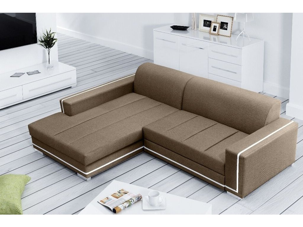 Rohová sedací souprava Tamarin je díky své jednoduché linii vhodná do každého interiéru. Zajímavým prvkem je neobvyklé prošití sedacích částí a bílý lemující proužek, který sedačce dodává nádech elegance. Sedací souprava je rozkládácí a má také praktický úložný prostor. Výplň sedáku tvoří kombinace pružin faliste a kvalitní PUR pěny. Tuto sedačku nabízíme v několika barevných variantách. Vyobrazené dekorace nejsou v ceně.