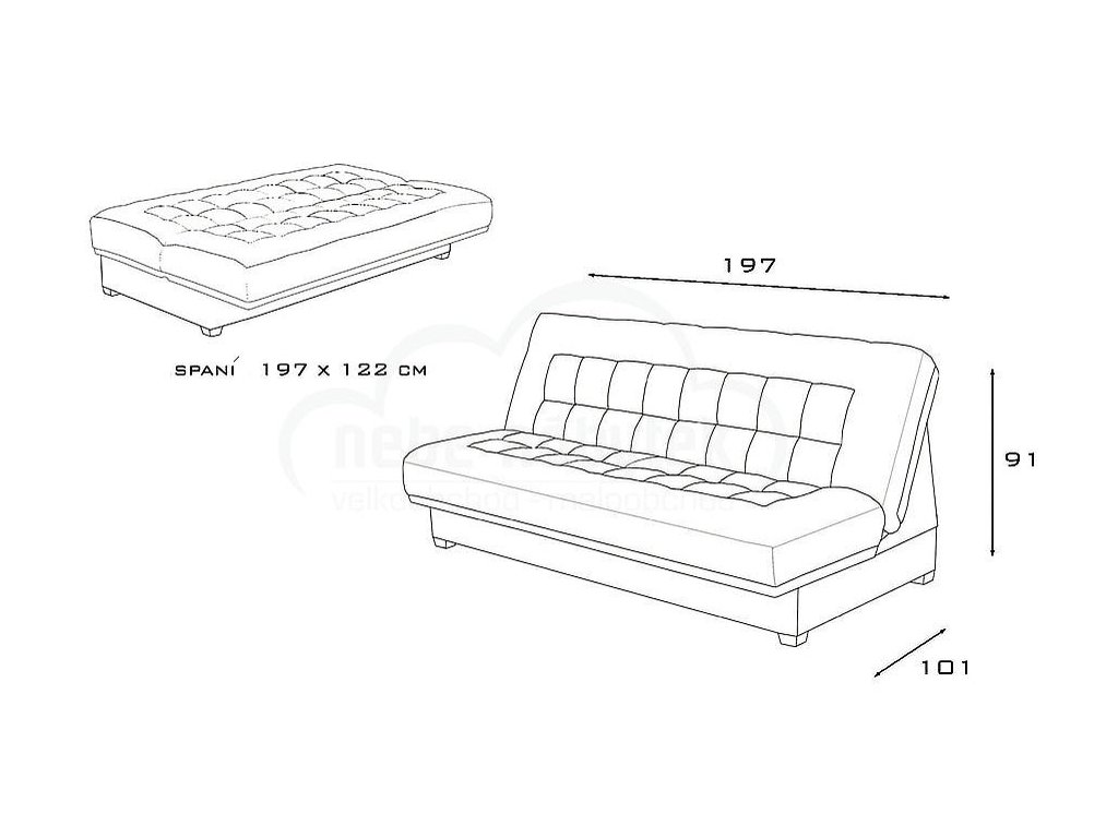 spací plocha: 197 x 122 cm