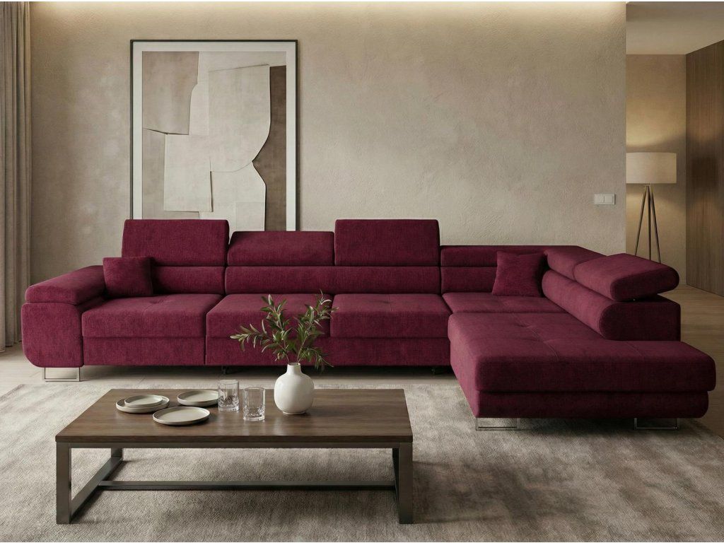Sedací soupravu nabízíme v levém i pravém provedení. Vyobrazené doplňky a dekorace nejsou v ceně.