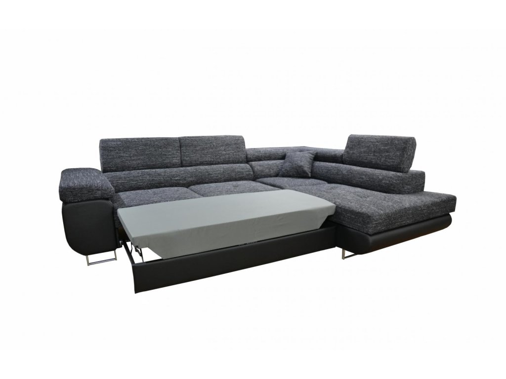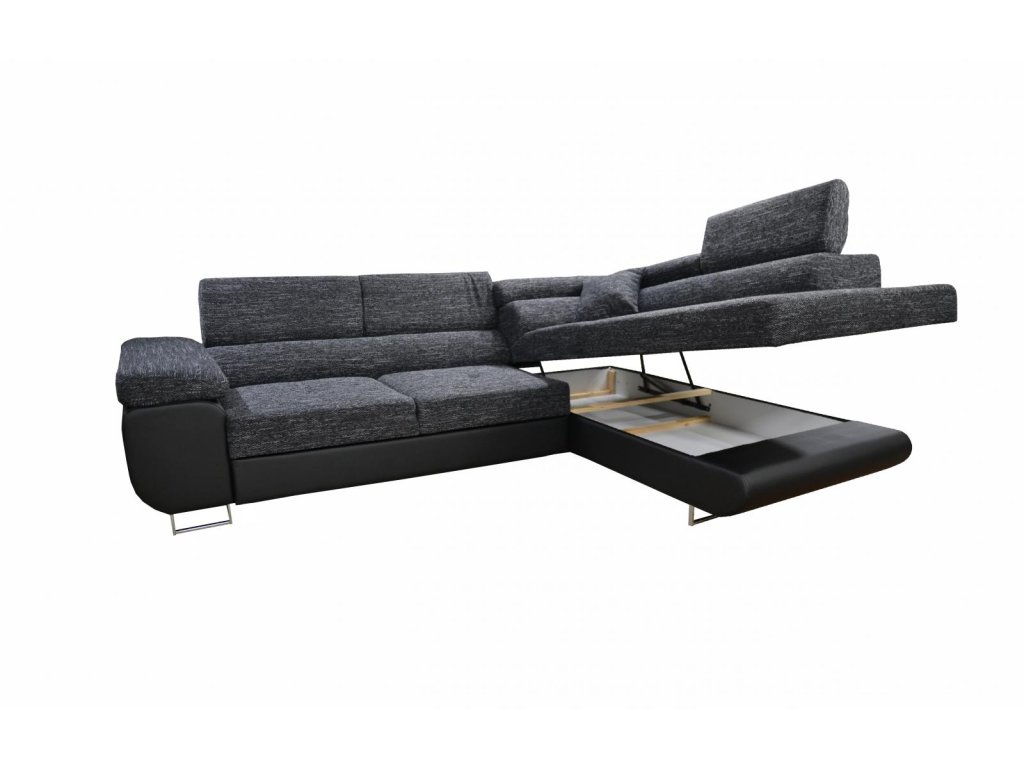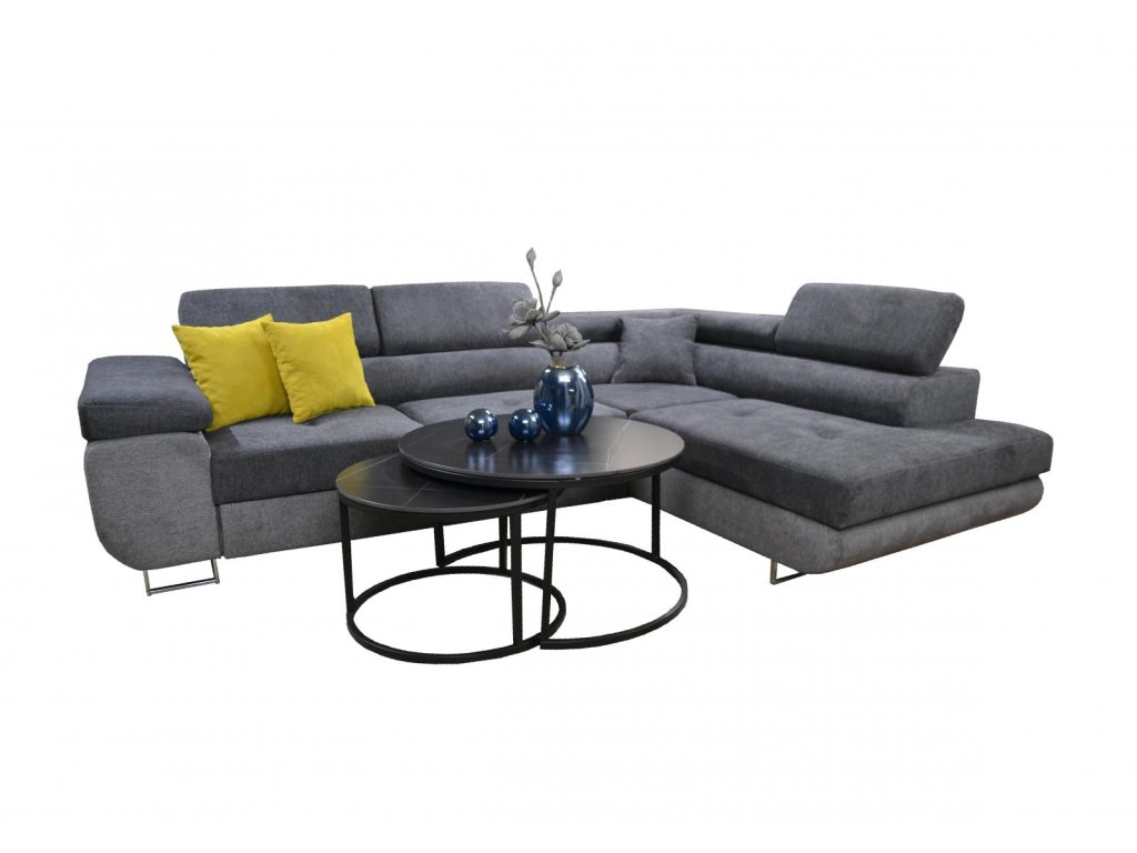 se stane příjemným centrem odpočinku, nebo setkání s rodinou a přáteli. Je velmi pohodlná, praktická a nabízí dostatek místa k sezení. Praktickou stránku sedací soupravy zajišťuje možnost rozložení k příležitostnému přespání a také nepostradatelný úložný prostor. Pohodlí při sezení zajišťuje výplň sedáků, kterou tvoří kombinace pružin s kvalitní PUR pěnou. Při odpočinku, nebo sledování televize Vám zvýší pohodlí polohovací opěrky. Sedací souprava je potažena kvalitní látkou a bude dodána v kombinaci barev, které jsou na úvodních fotografiích. Sedací soupravu nabízíme v levém i pravém provedení. Vyobrazené doplňky a dekorace nejsou v ceně.