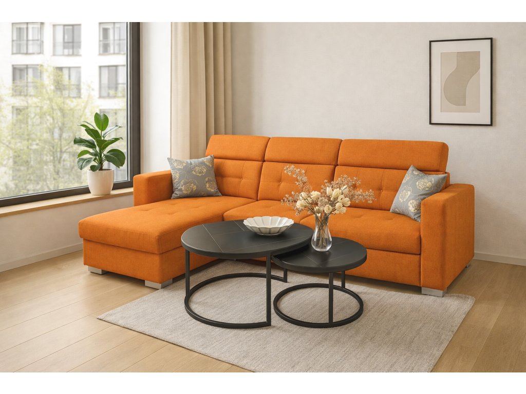 Sedací souprava Zara osloví každého, kdo preferuje moderní vzhled a zároveň pohodlí a praktičnost. Je potažena kvalitní potahovou látkou s kontrastním prošitím. Díky svým rozměrům je vhodná i do menších pokojů. Pro případ, že se návštěva zdrží přes noc, je sedací souprava vybavena rozkladem, díky kterému sedací soupravu jednoduše přeměníte v prostorné lůžko. Sedací souprava má praktický úložný prostor, který můžete využít např, na lůžkoviny. Pohodlí při sezení zajišťuje výplň sedáků, kterou tvoří kombinace pružin faliste s kvalitní PUR pěnou. Komfort a pohodlí při odpočinku zvyšuje polohovací opěrka hlavy. Sedací soupravu nabízíme na objednávku i v jiných potahových látkách, v levém i pravém provedení. K sedací soupravě je možno dokoupit křeslo a malý nebo velký taburet. Záda sedačky jsou čalouněná, je tedy vhodná i pro použití v prostoru.