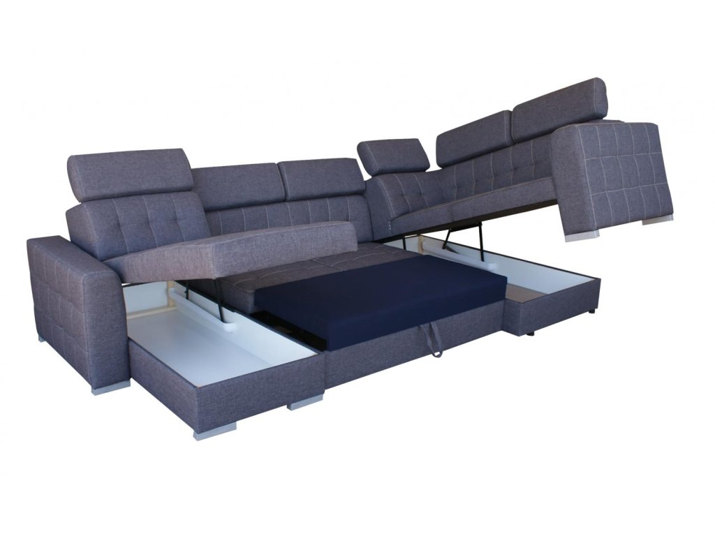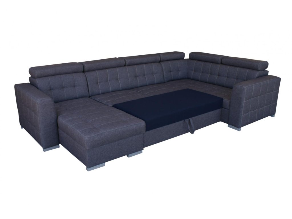 Sedací souprava Zara ve tvaru U osloví každého, kdo preferuje moderní vzhled a zároveň pohodlí a praktičnost. Je potažena kvalitní potahovou látkou s kontrastním prošitím. Sedací souprava je velmi pohodlná a dostatečně velká na posezení s přáteli, nebo rodinou. Pro případ, že se návštěva zdrží přes noc, je sedací souprava vybavena rozkladem, díky kterému sedací soupravu jednoduše přeměníte v prostorné lůžko. Sedací souprava má 2 praktické úložné prostory, které můžete využít např., na lůžkoviny. Pohodlí při sezení zajišťuje výplň sedáků, kterou tvoří kombinace pružin faliste s kvalitní PUR pěnou. Komfort a pohodlí při odpočinku zvyšuje polohovací opěrka hlavy. Sedací soupravu nabízíme na objednávku i v jiných potahových látkách, v levém i pravém provedení, nebo také v provedení do L. K sedací soupravě je možno dokoupit křeslo a malý nebo velký taburet. Úvodní fotografie je ilustrační. Sedací souprava bude dodána v potahové látce Soro 97 - vzorek je vyobrazen ve druhé doplňkové fotografii.