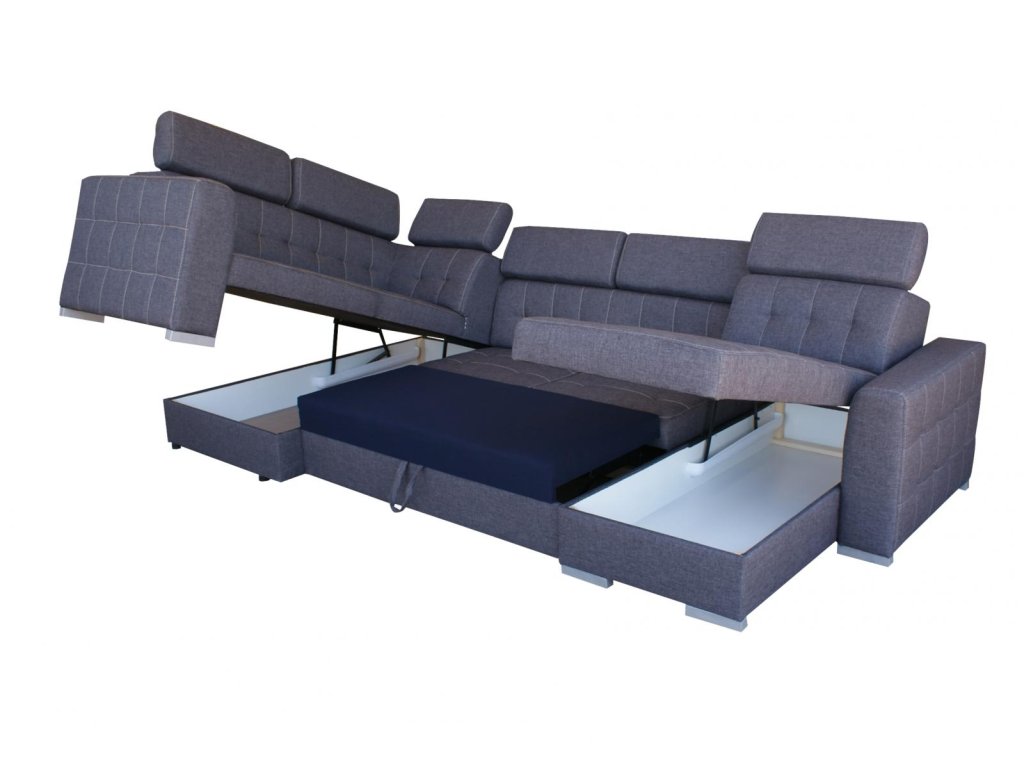 Sedací souprava Zara ve tvaru U, osloví každého, kdo preferuje moderní vzhled a zároveň pohodlí a praktičnost. Je potažena kvalitní potahovou látkou s kontrastním prošitím. Sedací souprava je velmi pohodlná a dostatečně velká na posezení s přáteli, nebo rodinou. Pro případ, že se návštěva zdrží přes noc, je sedací souprava vybavena rozkladem, díky kterému sedací soupravu jednoduše přeměníte v prostorné lůžko. Sedací souprava má 2 praktické úložné prostory, které můžete využít např., na lůžkoviny. Pohodlí při sezení zajišťuje výplň sedáků, kterou tvoří kombinace pružin faliste s kvalitní PUR pěnou. Komfort a pohodlí při odpočinku zvyšuje polohovací opěrka hlavy. Sedací soupravu nabízíme v levém i pravém provedení, nebo také v provedení do L. K sedací soupravě je možno dokoupit křeslo a malý nebo velký taburet.