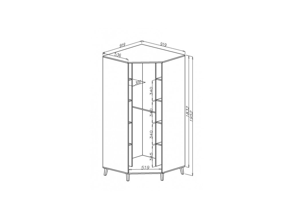 1x Rohová šatní skříň Arti 02 (91,9/195,2/91,9)