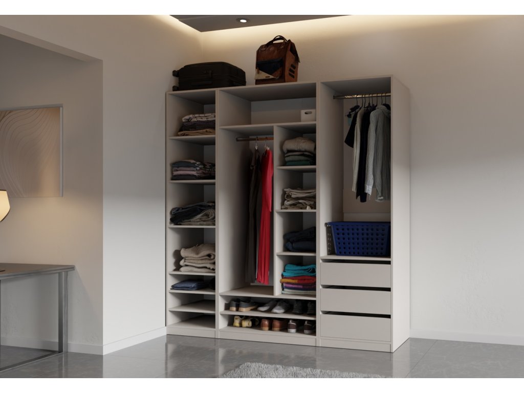 Systém otevřených skříní, které jsou vhodné do ložnic, předsíní, dětských pokojů, pracoven, koupelen, případně i do garáží. Jsou cenově výhodnější, než klasické skříně.