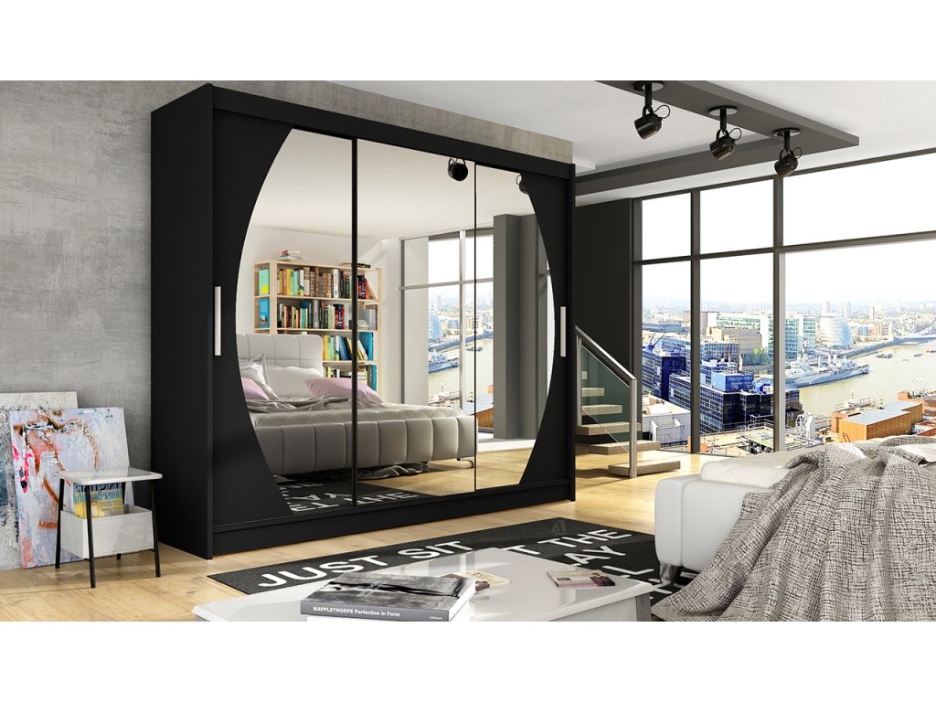 Skříň Astana s posuvnými dveřmi, je vyrobena z kvalitního lamina o síle 16 mm a hrany jsou ukončeny ABS lištou. Vodící lišty jsou vyrobeny z odolného hliníku a splňují požadavky pro každodenní užívání. Na dveřích jsou nalepená skleněná zrcadla, která jsou na obou stranách zaříznutá do elegantního oblouku a jsou součástí skříně. Zrcadla místnost opticky zvětší a prosvětlí. Skříň nabízíme ve čtyřech odstínech. Díky svým rozměrům a uspořádání poskytuje dostatek úložného prostoru. Skříň je dodávána v demontu a součástí je montážní plánek včetně všech potřebných spojovacích materiálů. Vyobrazené dekorace nejsou v ceně.