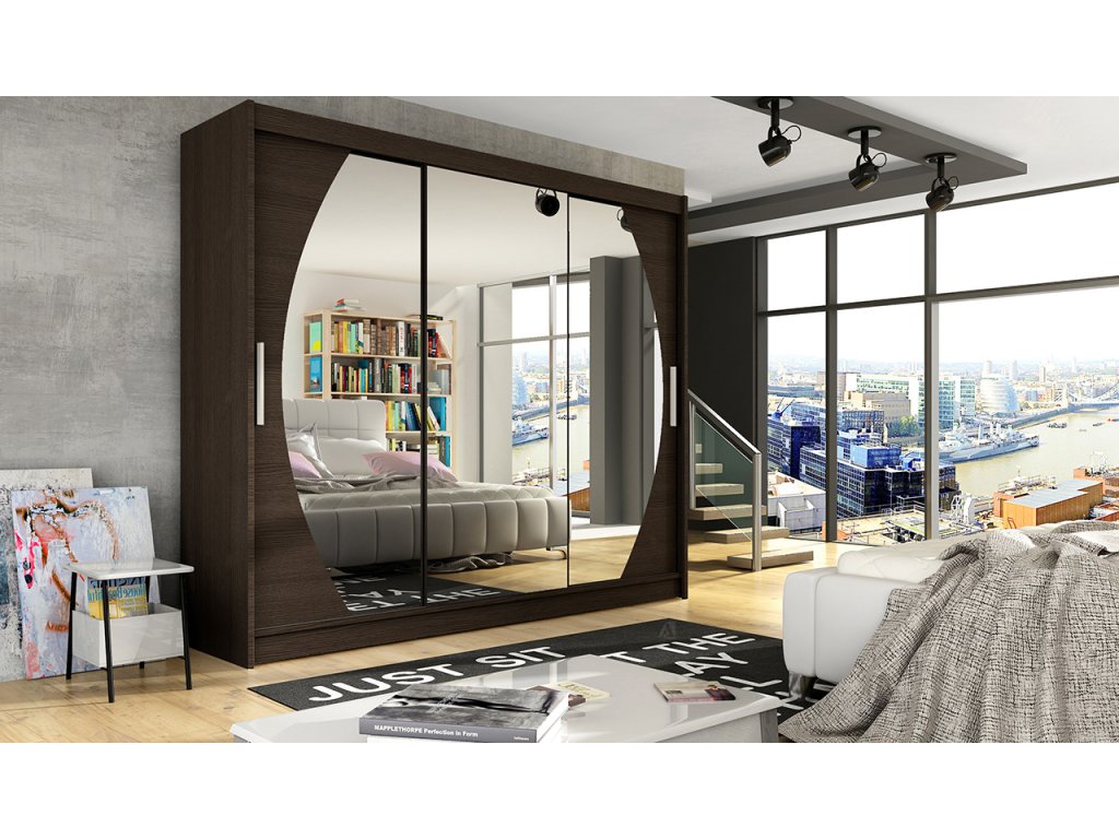 Skříň Astana s posuvnými dveřmi, je vyrobena z kvalitního lamina o síle 16 mm a hrany jsou ukončeny ABS lištou. Vodící lišty jsou vyrobeny z odolného hliníku a splňují požadavky pro každodenní užívání. Na dveřích jsou nalepená skleněná zrcadla, která jsou na obou stranách zaříznutá do elegantního oblouku a jsou součástí skříně. Zrcadla místnost opticky zvětší a prosvětlí. Skříň nabízíme ve čtyřech odstínech. Díky svým rozměrům a uspořádání poskytuje dostatek úložného prostoru. Skříň je dodávána v demontu a součástí je montážní plánek včetně všech potřebných spojovacích materiálů. Vyobrazené dekorace nejsou v ceně.