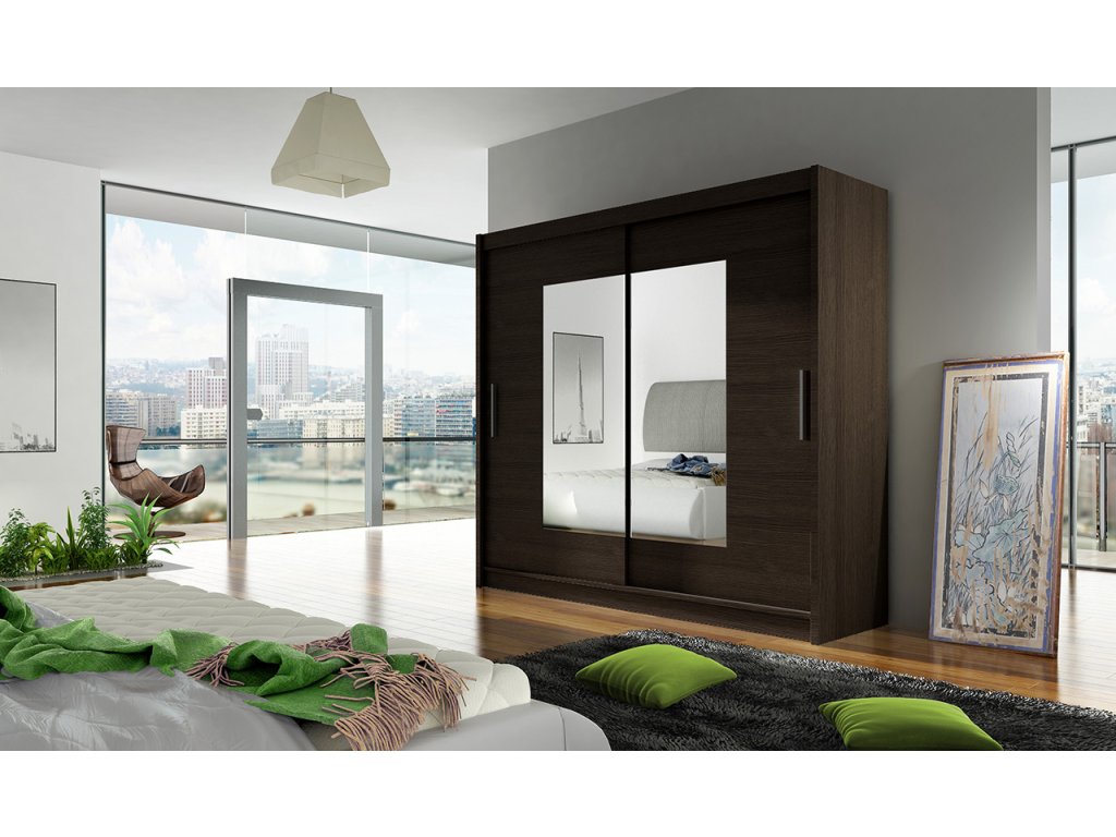 Skříň Berger s posuvnými dveřmi, je vyrobena z kvalitního lamina o síle 16 mm a hrany jsou ukončeny ABS lištou. Vodící lišty jsou vyrobeny z odolného hliníku a splňují požadavky pro každodenní užívání. Skříň je doplněna zrcadly, která jsou umístěna na středu dveří a místnost opticky zvětší a prosvětlí. Nabízíme ji ve čtyřech odstínech. Díky svým rozměrům a uspořádání poskytuje dostatek úložného prostoru. Skříň je dodávána v demontu a součástí je montážní plánek včetně všech potřebných spojovacích materiálů. Vyobrazené dekorace nejsou v ceně. Skleněná zrcadla jsou součástí skříně.
