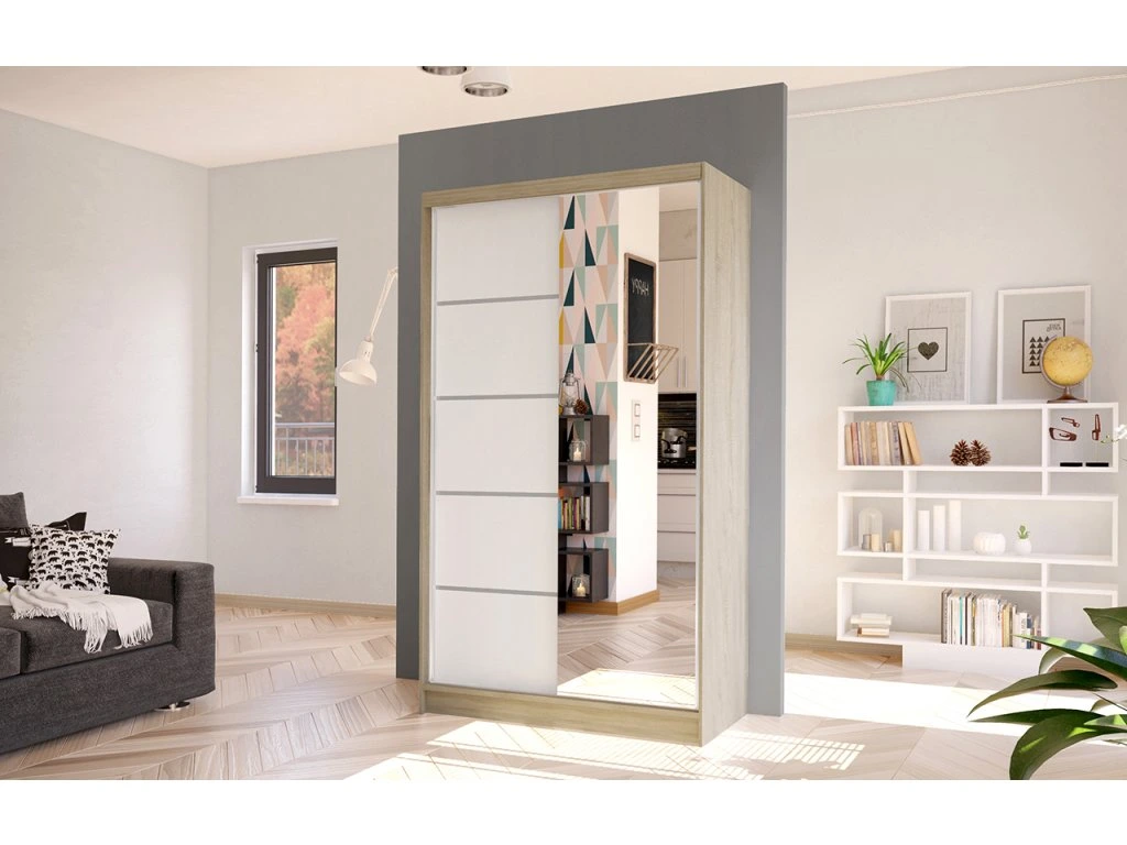 Korpus i dveře jsou vyrobeny z odolné 16 mm laminované desky s ABS hranami, které zajišťují dlouhou životnost. Posuvné dveře se hladce pohybují po hliníkových vodicích lištách. Skříň je dostupná v několika atraktivních barevných provedeních, takže ji snadno sladíte s ostatním nábytkem.