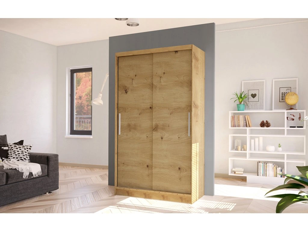 Korpus i dveře jsou vyrobeny z odolné 16 mm laminované desky s ABS hranami, které zajišťují dlouhou životnost. Posuvné dveře se hladce pohybují po hliníkových vodicích lištách. Skříň je dostupná v několika atraktivních barevných provedeních, takže ji snadno sladíte s ostatním nábytkem.