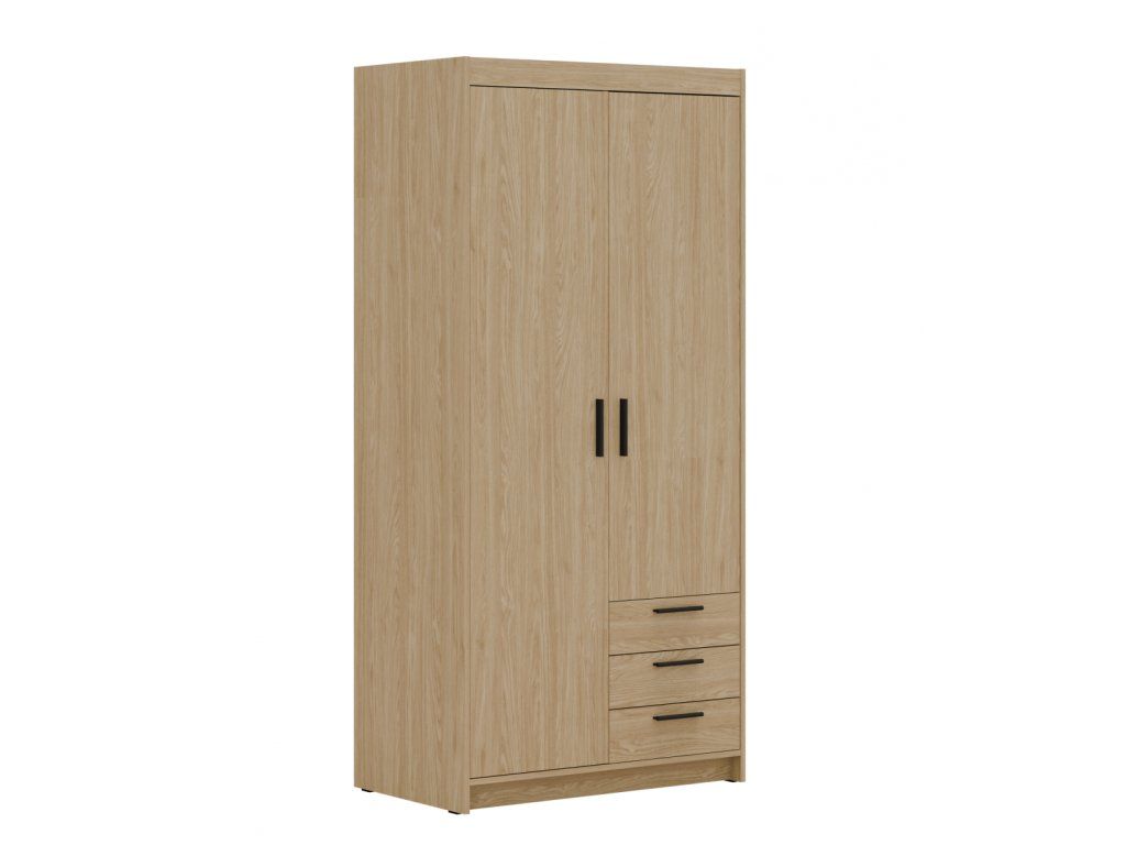 Šatní skříň Enja je vyrobena z kvalitního lamina tl.15 mm, které je odolné a snadné na údržbu. Vnitřní uspořádání skříně je praktické a poskytuje dostatek úložného prostoru. Své uplatnění najde v ložnici, předsíni i v dětském pokoji. Ke skříni lze dokoupit nádstavec. Skříň je dodávaná v demontu a nabízíme ji ve několika barevných provedeních. Součástí balení je montážní plánek včetně všech potřebných spojovacích materiálů.