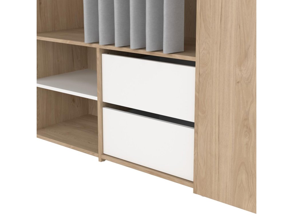 Série šatních skříní Harmony přináší praktické a originální řešení úložného prostoru. Dveře skříně jsou nahrazeny textilním závěsem. Skříň je vyrobená z kvalitního a snadno udržovatelného lamina. Skvěle se hodí do dětského nebo studentského pokoje, předsíně, kanceláře i domácí pracovny.