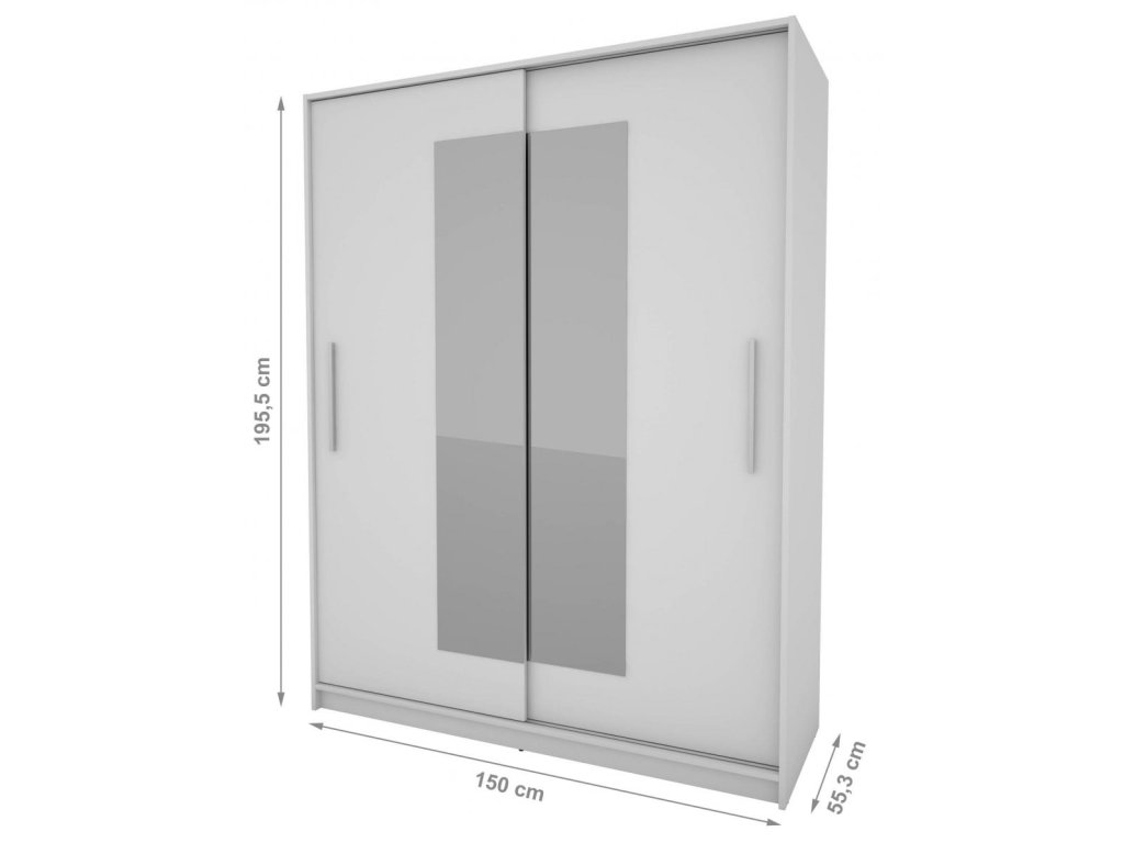 Skříň je vyrobena z kvalitního lamina. Díky svému vnitřnímu uspořádání nabízí dostatek úložného prostoru, posuvné dveře šetří prostor a zrcadlo ho opticky zvětšuje. Skříň je vhodná do ložnice, dětského nebo studentského pokoje, do předsíně i kanceláře. Vnitřní uspořádání skříně je vyobrazeno na fotografii. Skříň je dodávána v demontu. Součástí jsou i skleněná zrcadla, která jsou nalepena na dveřích skříně a také montážní plánek včetně všech potřebných spojovacích materiálů. Vyobrazené dekorace nejsou v ceně.