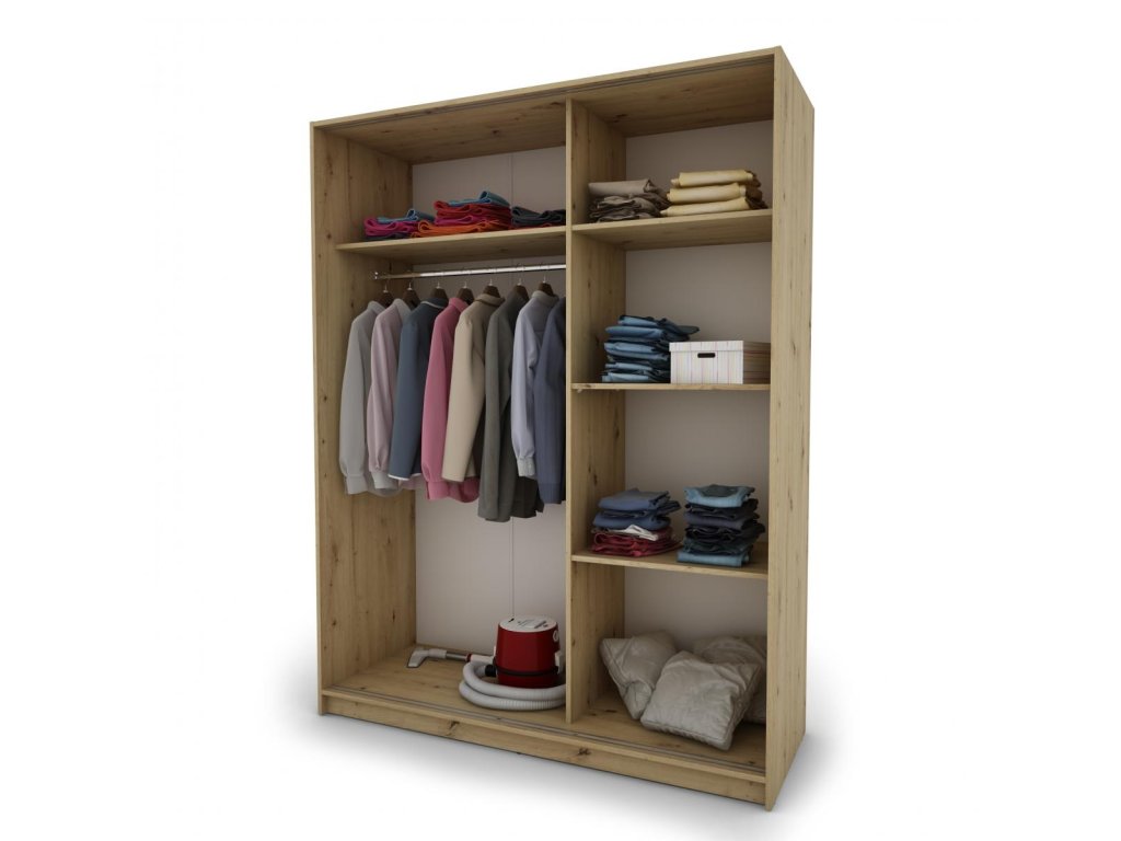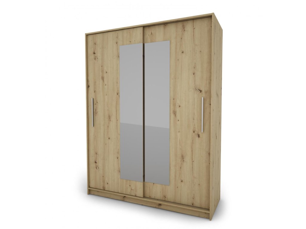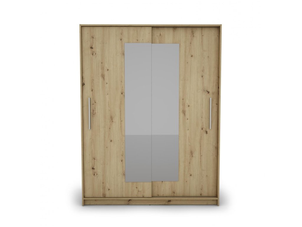 Skříň je vyrobena z kvalitního lamina. Díky svému vnitřnímu uspořádání nabízí dostatek úložného prostoru, posuvné dveře šetří prostor a zrcadlo ho opticky zvětšuje. Skříň je vhodná do ložnice, dětského nebo studentského pokoje, do předsíně i kanceláře. Vnitřní uspořádání skříně je vyobrazeno na fotografii. Skříň je dodávána v demontu. Součástí jsou i skleněná zrcadla, která jsou nalepena na dveřích skříně a také montážní plánek včetně všech potřebných spojovacích materiálů. Vyobrazené dekorace nejsou v ceně.