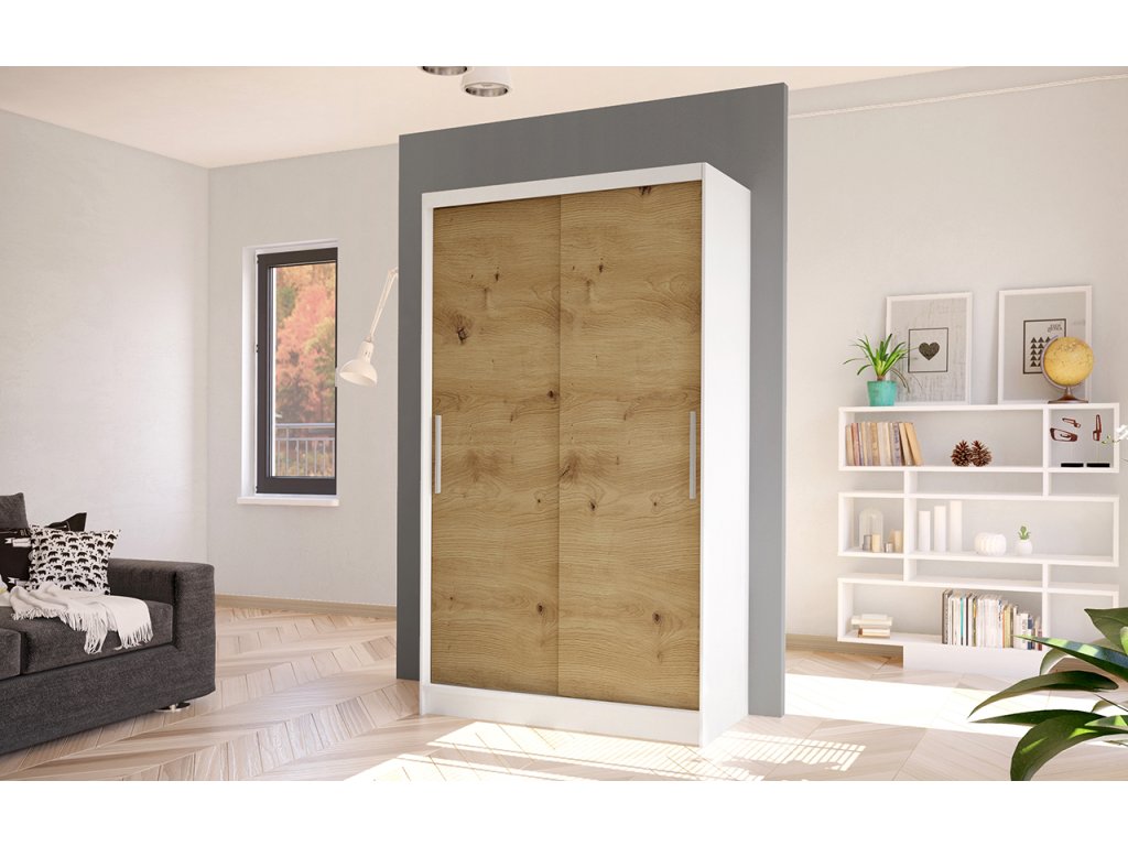Korpus i dveře jsou vyrobeny z odolné 16 mm laminované desky s ABS hranami, které zajišťují dlouhou životnost. Posuvné dveře se hladce pohybují po hliníkových vodicích lištách. Skříň je dostupná v několika atraktivních barevných provedeních, takže ji snadno sladíte s ostatním nábytkem.