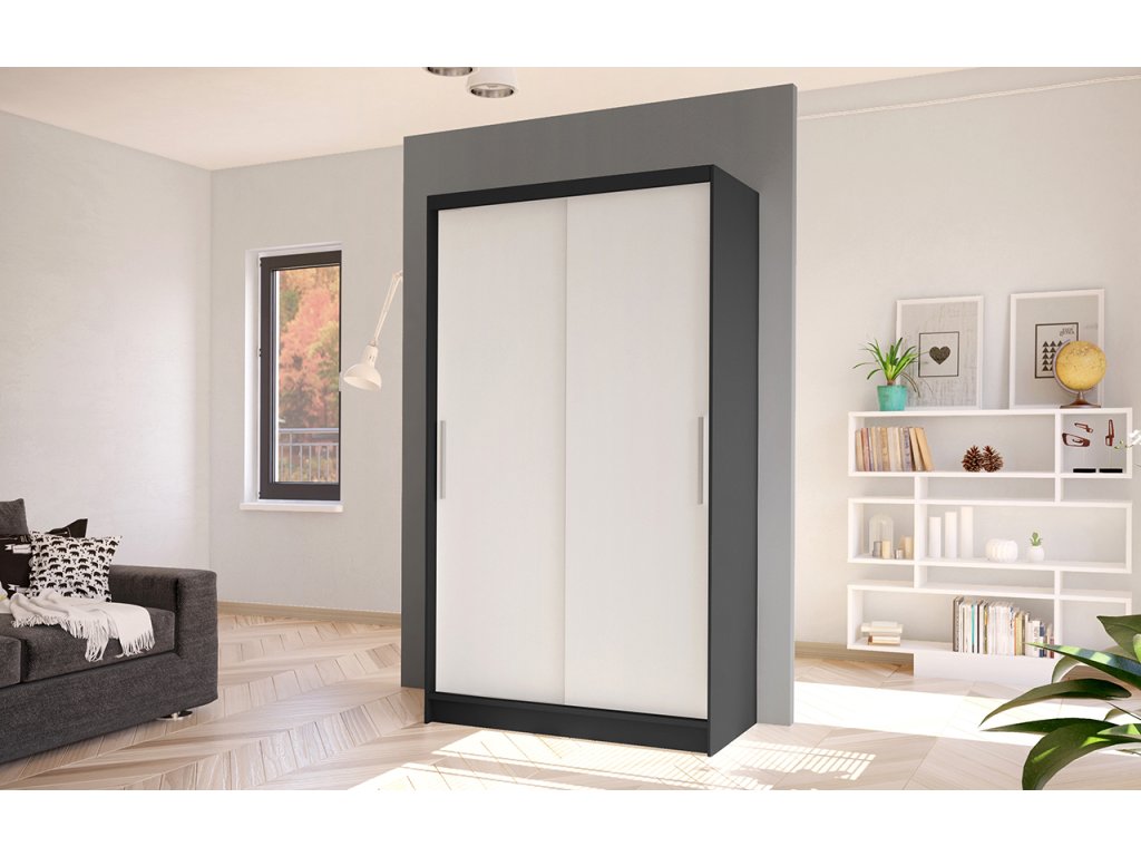 Korpus i dveře jsou vyrobeny z odolné 16 mm laminované desky s ABS hranami, které zajišťují dlouhou životnost. Posuvné dveře se hladce pohybují po hliníkových vodicích lištách. Skříň je dostupná v několika atraktivních barevných provedeních, takže ji snadno sladíte s ostatním nábytkem.