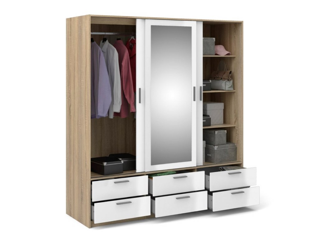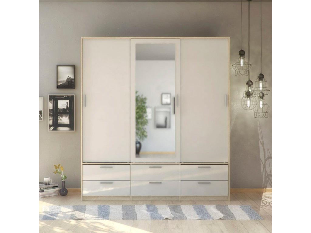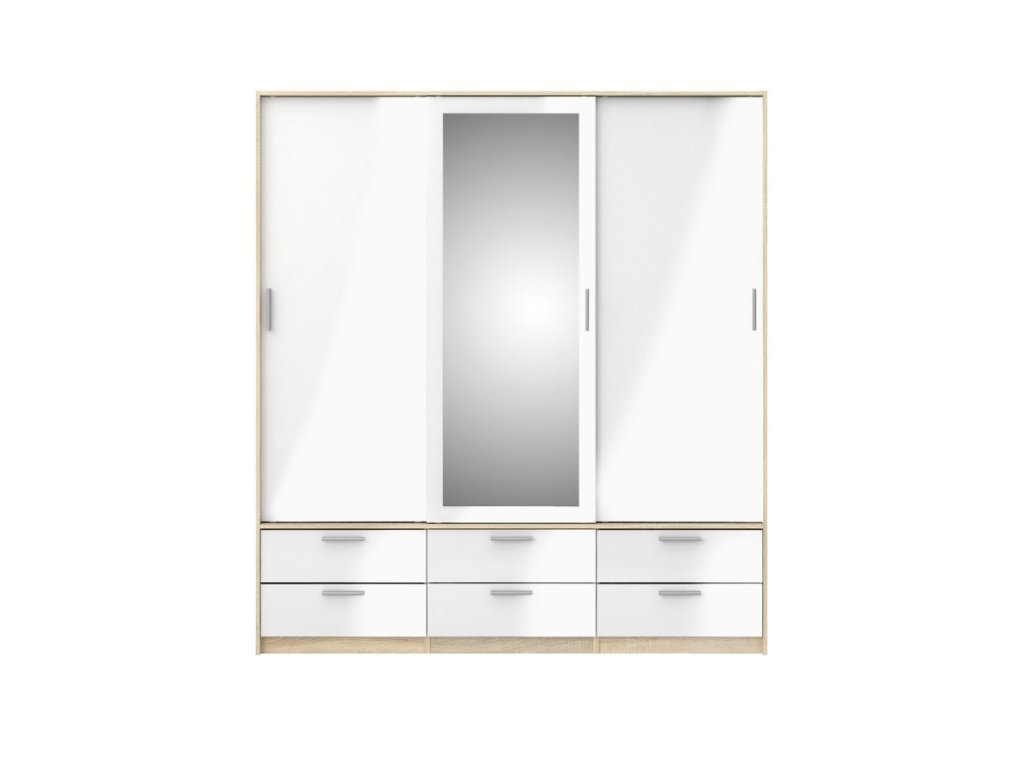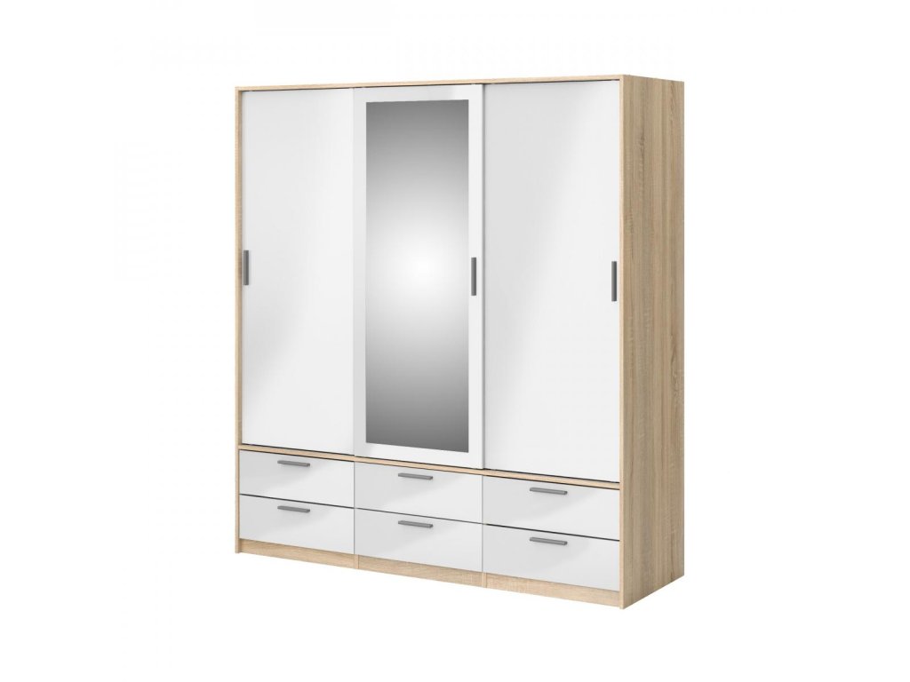 Šatní skříň Lincoln s posuvnými dveřmi nabízí dostatek úložného prostoru a univerzální vyuužití. Výborně se hodí např. do ložnice, do dětského i studentského pokoje, ale i do pracovny či předsíně. Skříň je vyrobená v jednoduchém a nadčasovém skandinávském stylu. Má rovné a čisté linie, které vytvoří útulný, pohodový a příjemný interiér. Vnitřní vybavení skříně je vyobrazeno v doplňkových fotografiích. Skříň je také vybavena praktickými zásuvkami, které můžete využít např.na spodní prádlo. Je dodávaná v demontu. Součástí balení je montážní návod včetně všech spojovacích prvků. Vyobrazené dekorace nejsou v ceně.