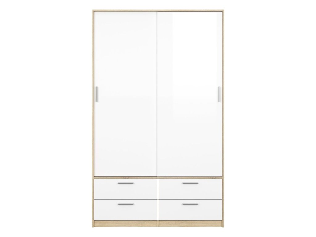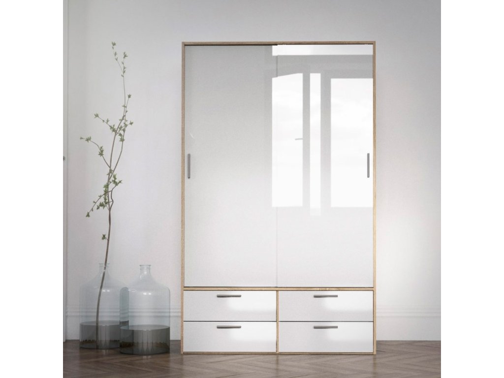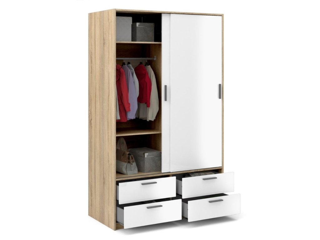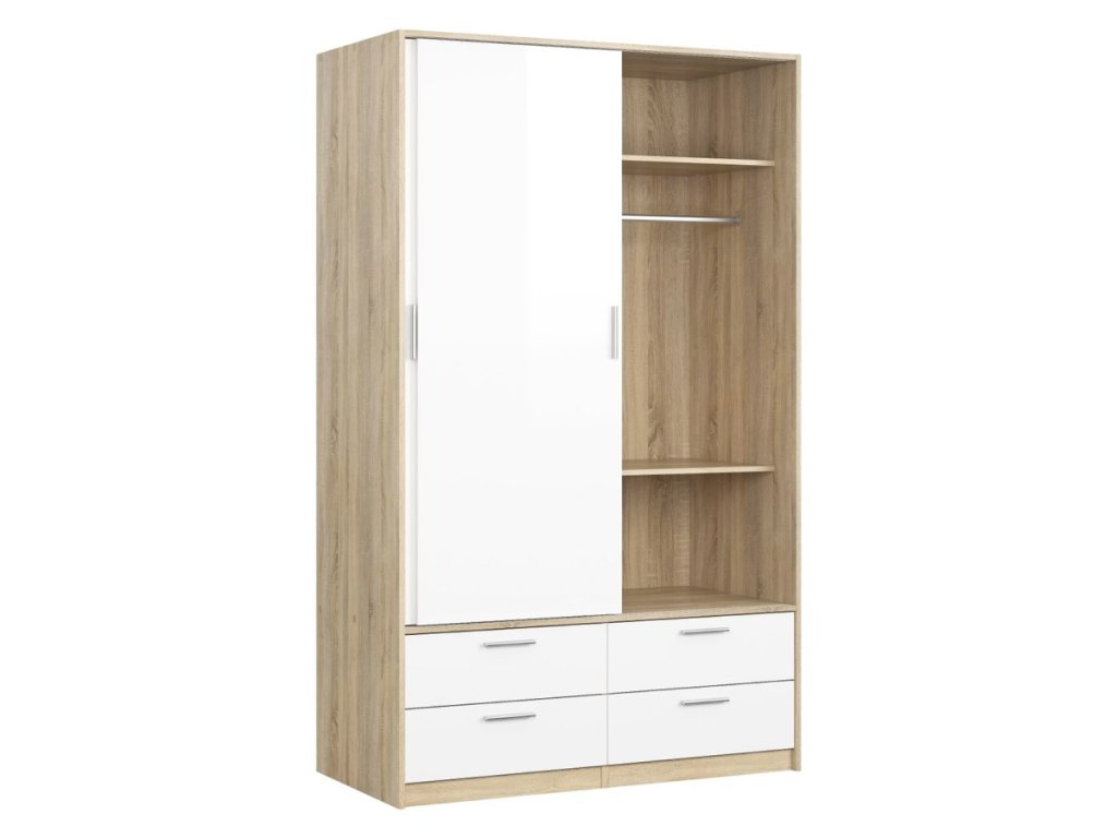 Šatní skříň Lincoln s posuvnými dveřmi nabízí dostatek úložného prostoru a univerzální vyuužití. Výborně se hodí např. do ložnice, do dětského i studentského pokoje, ale i do pracovny či předsíně. Skříň je vyrobená v jednoduchém a nadčasovém skandinávském stylu. Má rovné a čisté linie, které vytvoří útulný, pohodový a příjemný interiér. Vnitřní vybavení skříně je vyobrazeno v doplňkových fotografiích. Skříň je také vybavena praktickými zásuvkami, které můžete využít např.na spodní prádlo. Je dodávaná v demontu. Součástí balení je montážní návod včetně všech spojovacích prvků. Vyobrazené dekorace nejsou v ceně.