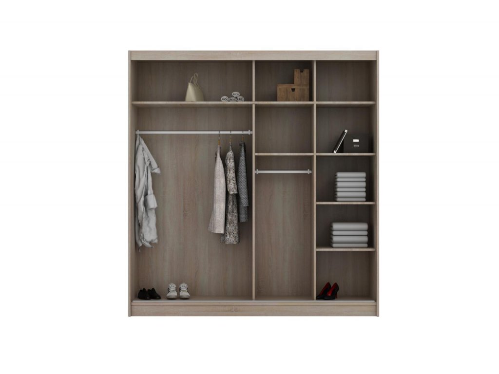 Skříň Nova s posuvnými dveřmi, je vyrobena z kvalitního lamina o síle 16 mm v dekoru dub sonoma. Na dveřích skříně je nalepené zrcadlo, které místnost opticky zvětší a prosvětlí. Díky svým rozměrům a uspořádání poskytuje dostatek úložného prostoru. Skříň je dodávána v demontu a součástí je montážní plánek včetně všech potřebných spojovacích materiálů. Skříň nabízíme v rozměrech: 120 cm, 150 cm, 200 cm, 250 cm. Všechny dostupné rozměry nabízíme také v dekoru wenge. Vyobrazené doplňky a dekorace nejsou v ceně.