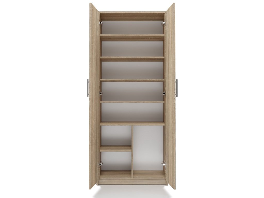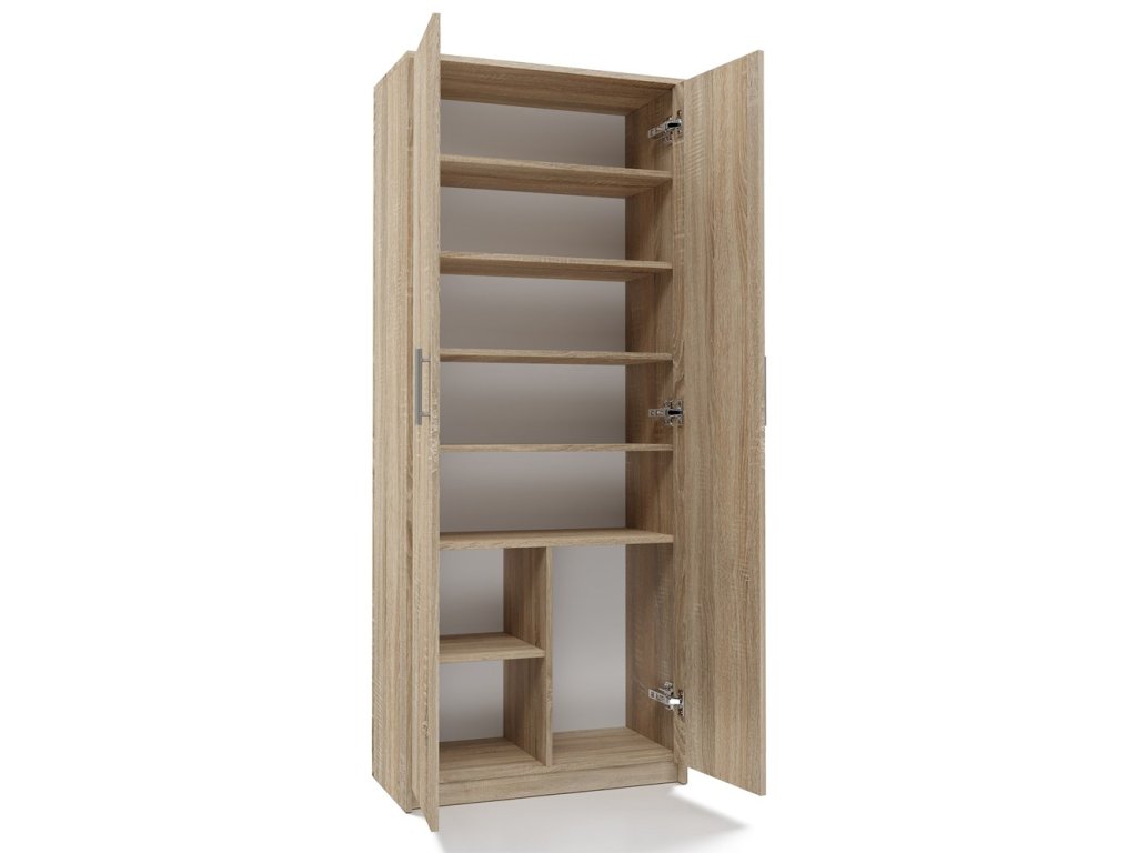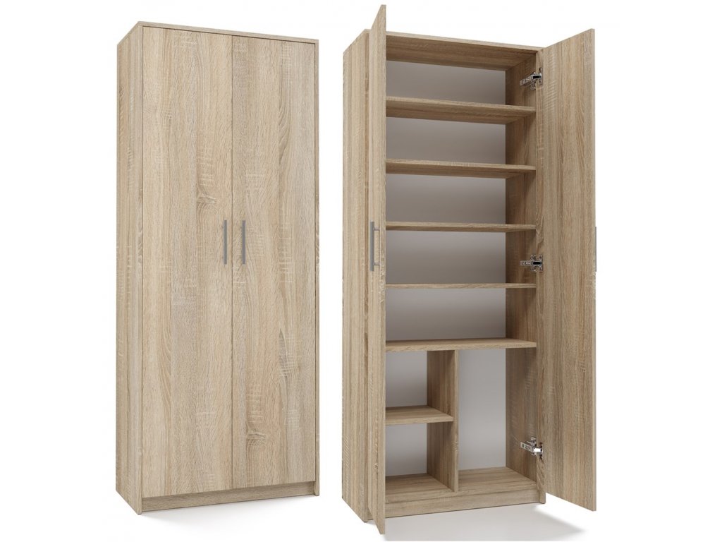 Policová skříň splňuje veškeré požadavky pro ukládání oblečení. Vnitřní uspořádání skříně poskytuje dostatek prostoru na oblečení. Skříň má univerzální využití a je vyrobena z 16 mm lamina, které je odolné a snadné na údržbu. Skříň je dodávaná v demontu a součástí je montážní plánek včetně všech potřebných spojovacích materiálů. U tohoto typu skříně mohou být některé nepohledové hrany desek nebo plochy neopáskovány v barvě skříně (především vrchní půda či hrany dveří, apod.). Vyobrazené dekorace nejsou v ceně.