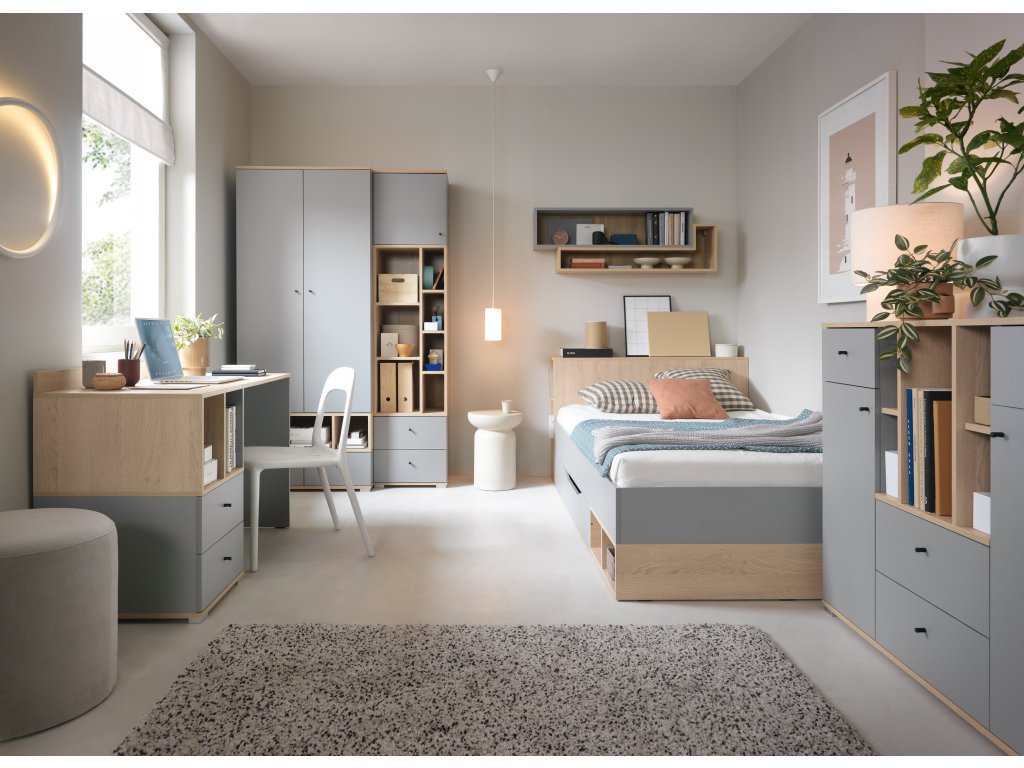 Moderní dětský pokoj, který je spojením elegance, praktičnosti a pohodlí. Krásné barevné provedení, které zapadne do jakéhokoliv interiéru a velmi dobře se sladí s ostatními bytovými doplňky, které Vaše děti v pokojíčku nezbytně potřebují. Různé díly umožní sestavit nábytek přesně podle Vašich představ a potřeb. Jednoduché, ale zároveň zajímavé provedení tohoto sektoru umožní Vašim dětem příjemně strávené chvíle při hraní, učení nebo lenošení.