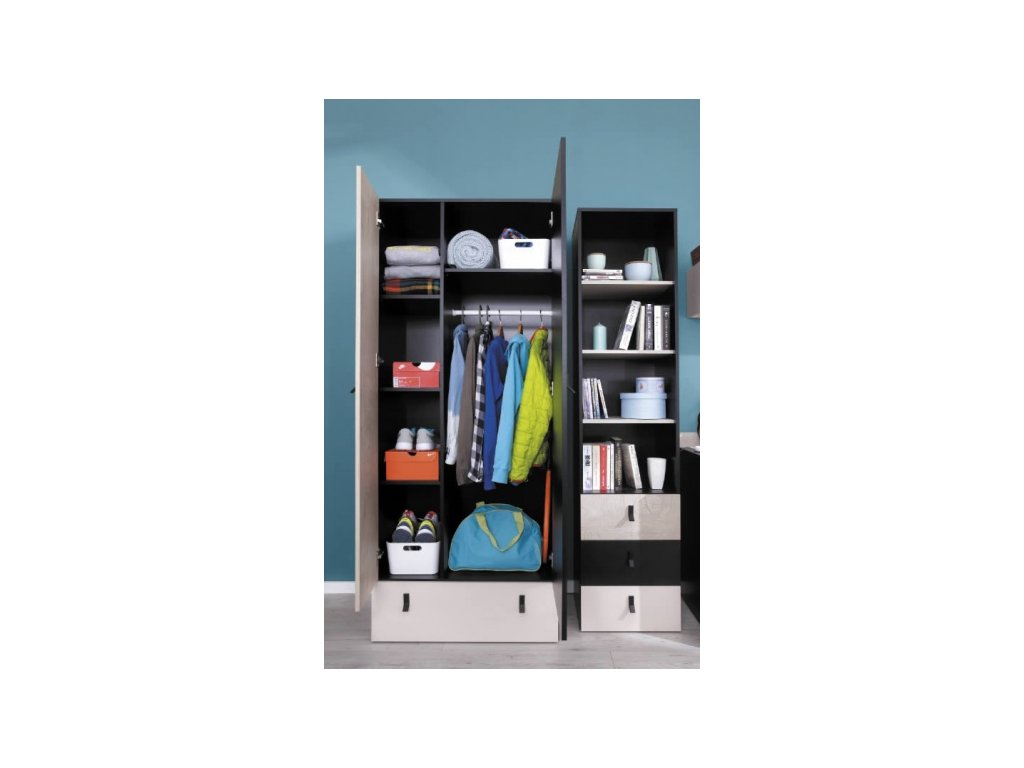 korpus černý + dvířka dub + béžová