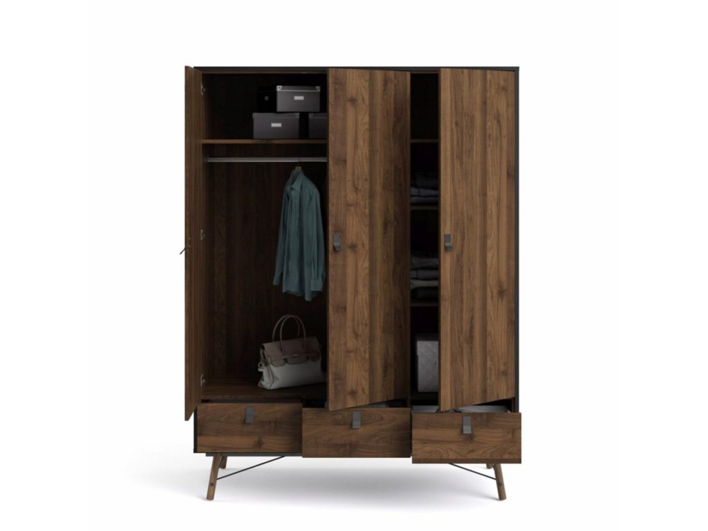 Šatní skříň Rain je navržena a vyrobena v jedinečném designu, který krásně doplní každý moderní interiér. Je vyrobená z lamina, které je odolné a snadné na údržbu. Skříň má kvalitní zpracování, je vyráběná v souladu s ohledy na životní prostředí a navíc je praktická a funkční. Nožky, na kterých skříň stojí, jí dodávají nádech oblíbeného retro designu a prostor pod skříní se bude lépe udržovat v čistotě. Skříň můžete doplnit dalšími prvky Rain ve stejném designu, nebo si ji můžete objednat i samostatně a doplnit tak stávající interiér. Cena je uvedena pouze za skříň.