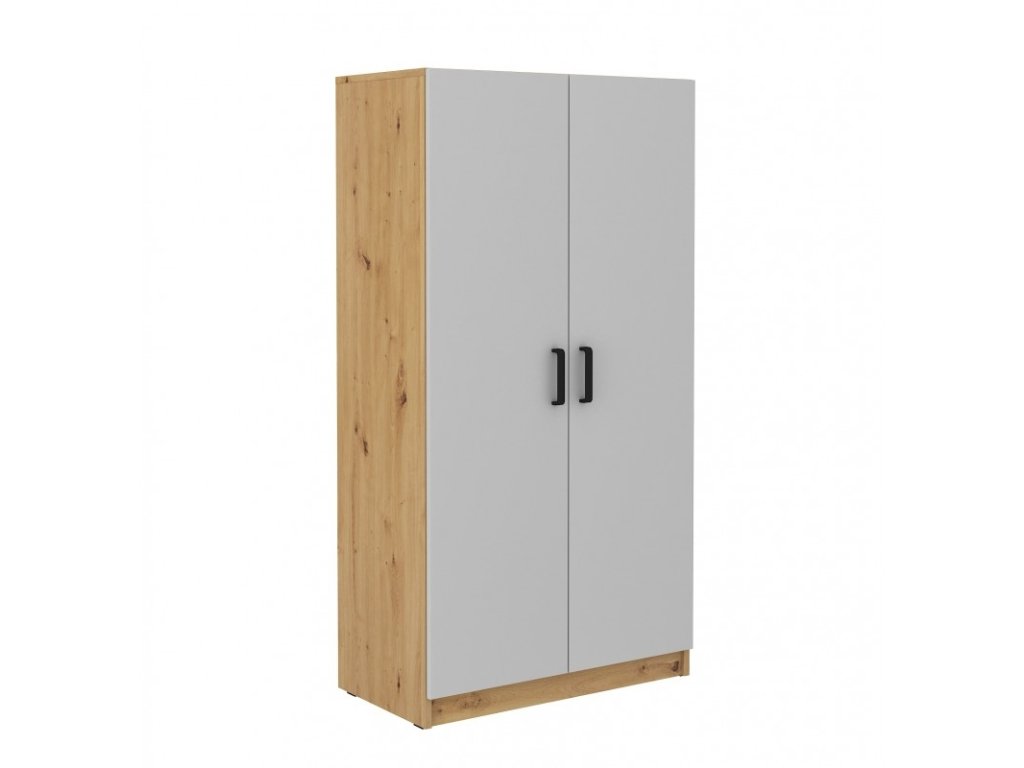 Dvoudveřová skříň s výsuvným věšákem Matylda 108 je vyrobena z lamina v provedení světle šedá a dub artisan. Skříň je velmi praktická a pojme vše potřebné. Je dodávána v demontu. Součástí balení je montážní návod včetně všech spojovacích prvků.