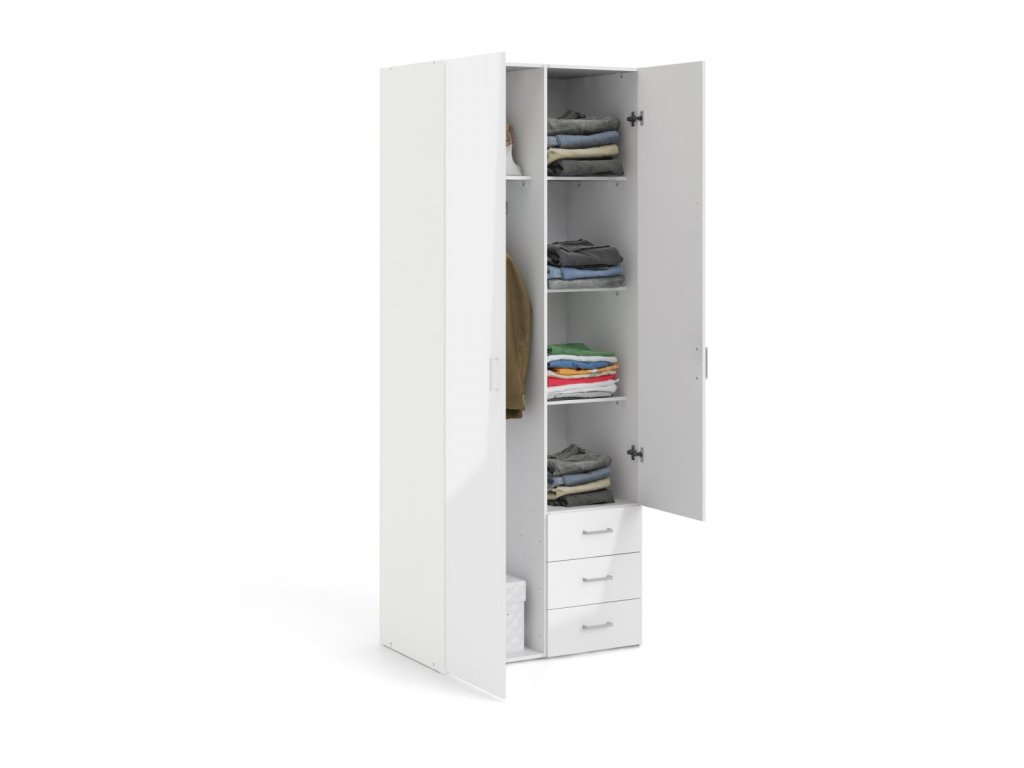 Šatní skříň Sid nabízí dostatek úložného prostoru a univerzální využití. Výborně se hodí např. do ložnice, do dětského i studentského pokoje, ale i do pracovny či předsíně. Skříň je vyrobená v jednoduchém a nadčasovém skandinávském stylu. Má rovné a čisté linie, které vytvoří útulný, pohodový a příjemný interiér. Korpus skříně je z bílého lamina, dvířka jsou v bílém lesku. Vnitřní vybavení skříně je vyobrazeno v doplňkových fotografiích. Skříň je také vybavena praktickými zásuvkami, které můžete využít např.na spodní prádlo. Je dodávaná v demontu. Součástí balení je schématickým montážní návod včetně všech spojovacích prvků. Vyobrazené dekorace nejsou v ceně. U tohoto typu skříně mohou být některé nepohledové hrany desek nebo plochy neopáskovány v barvě skříně (především vrchní půda či hrany dveří, apod.). Vyobrazené dekorace nejsou v ceně.
