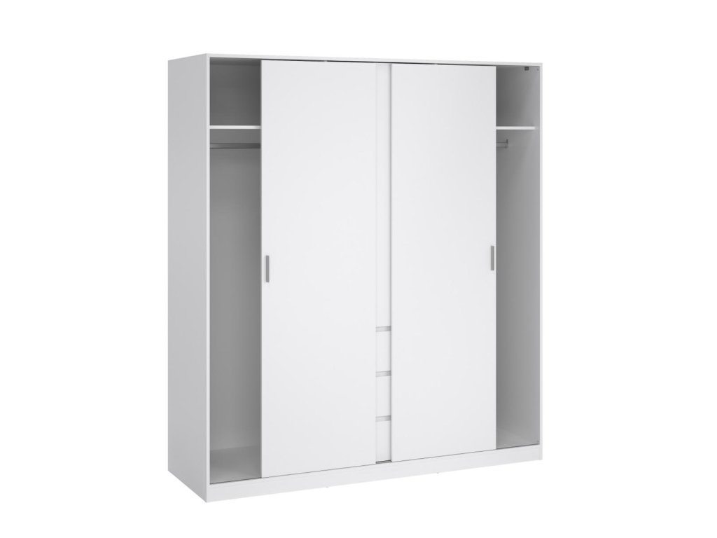 Šatní skříň Simplicity se vyznačuje jednoduchým, minimalistickým designem. Kombinuje styl a praktické úložné prostory a hladce harmonizuje estetiku a funkčnost ve vašem interiéru. Řada Simplicity vyrobená z kvalitního lamina nabízí také noční stolky, postele, komody, botníky a další úložné prostory v široké škále barevných variant a velikostí.