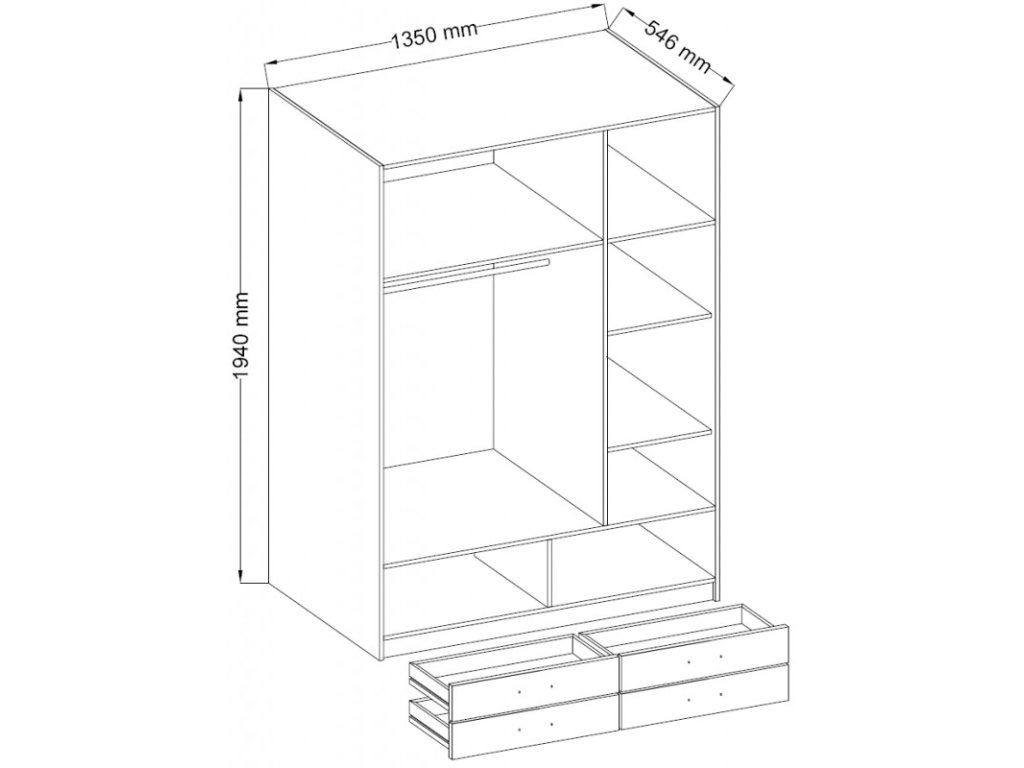 Šatní skříň se zásuvkami Stix je vyrobena z kvalitního lamina tl.16 mm, které je odolné a snadné na údržbu. Vnitřní uspořádání skříně je praktické a poskytuje dostatek úložného prostoru. Své uplatnění najde v ložnici, předsíni i v dětském pokoji. Skříň je dodávaná v demontu. Součástí balení je montážní plánek včetně všech potřebných spojovacích materiálů.