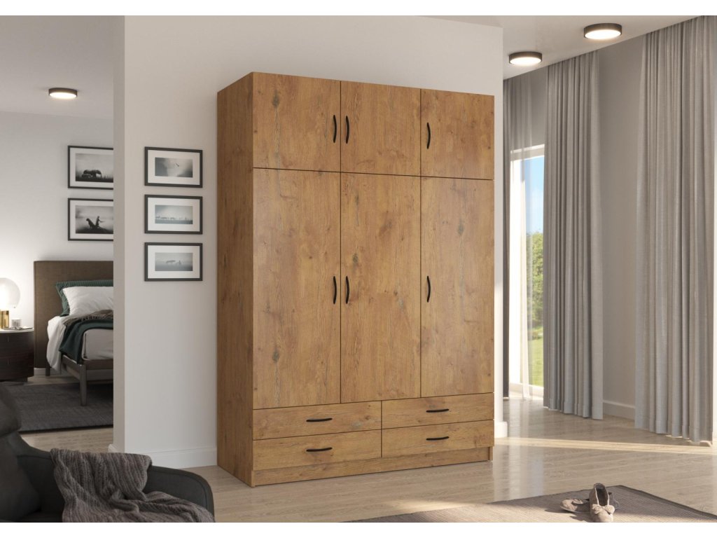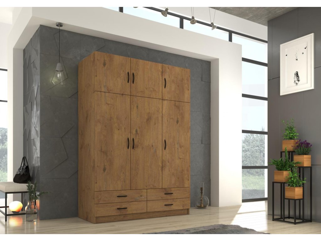 Šatní skříň se zásuvkami Stix je vyrobena z kvalitního lamina tl.16 mm, které je odolné a snadné na údržbu. Vnitřní uspořádání skříně je praktické a poskytuje dostatek úložného prostoru. Své uplatnění najde v ložnici, předsíni i v dětském pokoji. Skříň je dodávaná v demontu. Součástí balení je montážní plánek včetně všech potřebných spojovacích materiálů.