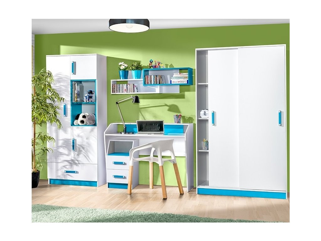 korpus: bílá + dvířka: bílá + dodatky: tyrkys
