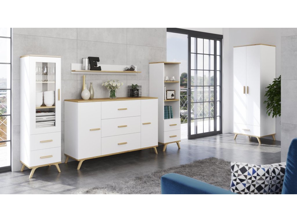 Skříň Roky 11 je vyrobena z lamina v krásném dekoru bílá a dub Artisan. Lamino tloušťky 18 mm je odolné a je zakončeno lištou ABS. Jistě oceníte i snadnou údržbu. Skříň pojme vše potřebné a ve spodní části má také dva šuplíky. Rukojeti v dekóru dřeva jsou vyrobeny z plastu. Je dodávána v demontu. Součástí balení je montážní návod včetně všech spojovacích prvků.