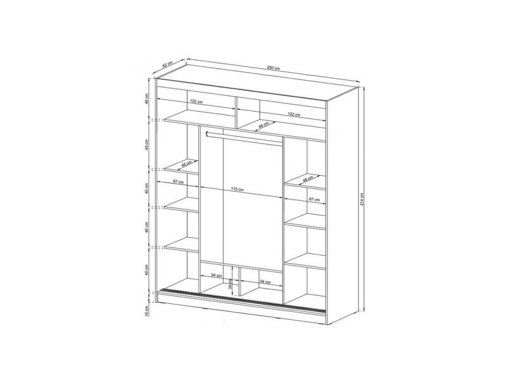 Vnitřní uspořádání - viz obrázek (tento obrázek je pouze ilustrační, celá skříň je v bílém provedení jako na hl. obrázku).